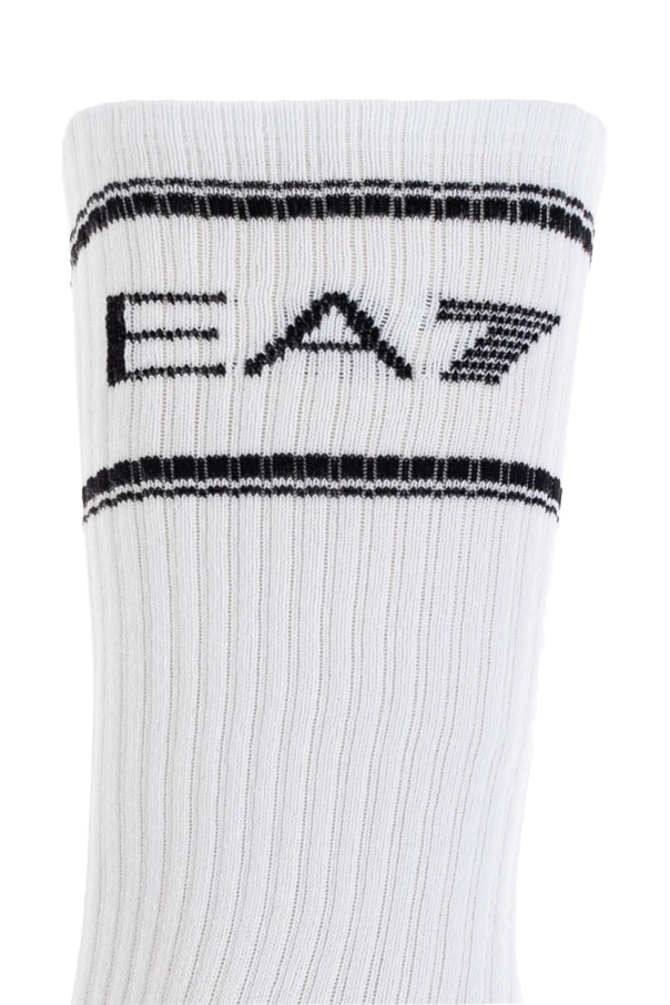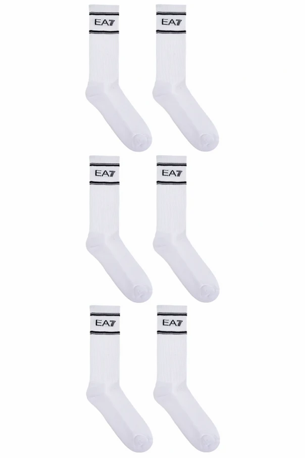 Die Socken sind in zeitlosem Weiß gehalten, ergänzt durch dezente schwarze Streifen sowie ein markantes EA7-Logo, das ihnen unverwechselbares Prestige verleiht. Der verlängerte Bund garantiert einen perfekten Sitz, während verstärkte Zonen an Ferse und Zehen den Tragekomfort erhöhen.