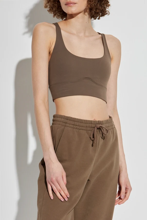 Das Trainings-Top Sienna von Rethinkit Studios ist eine raffinierte Wahl für Liebhaberinnen von Eleganz und einem aktiven Lebensstil. Es begeistert mit einem dezenten Braunton und einem präzisen Schnitt, der die Silhouette betont. Die kurze Form mit breiten, überkreuzten Trägern am Rücken sorgt nicht nur für einen atemberaubenden Look, sondern auch für optimale Stabilität bei jeder Bewegung.