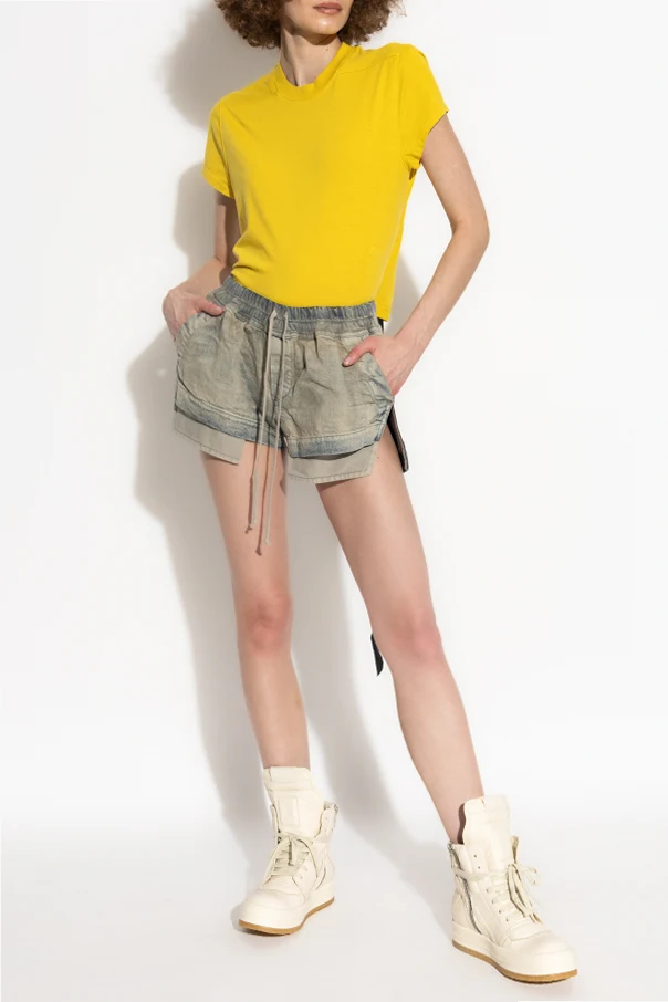 T-Shirt Small Level T von Rick Owens DRKSHDW ist eine raffinierte Interpretation der zeitlosen Klassiker in einer modernen, rebellischen Ausführung. Der einheitliche, gelbe Farbton zieht mit seiner subtilen Ausdrucksstärke die Blicke auf sich, während der Verzicht auf jegliche Prints den Minimalismus und die außergewöhnliche Eleganz des Designs unterstreicht.