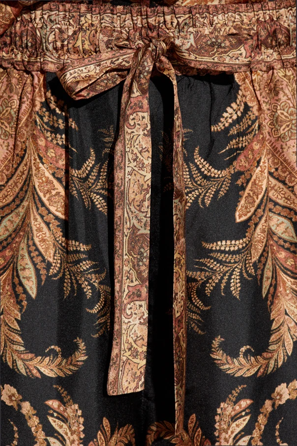 Weite Seidenhose der renommierten Marke Zimmermann verkörpert zeitlose Raffinesse und präsentiert sich in einer spektakulären Palazzo-Silhouette. Die weiten Beine umschmeicheln sanft die Figur, während der hohe Bund und der aus Stoff gefertigte Bindegürtel die Taille akzentuieren und ihre natürliche Schönheit hervorheben.