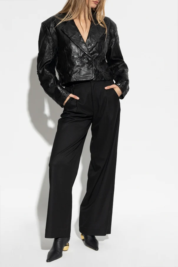 Die Lederjacke Gzmadisan von Gestuz verkörpert zeitgenössische Eleganz und raffinierten Minimalismus. Die dominante schwarze Farbe in Kombination mit dem Oversize-Schnitt verleiht der Silhouette einen modernen Ausdruck, ohne dabei auf eine zeitlose Ästhetik zu verzichten. Die kastenförmige, taillienlange Passform, die breiten Revers und die doppelten Nähte unterstreichen die einzigartige Konstruktion und die architektonische Schulterlinie.