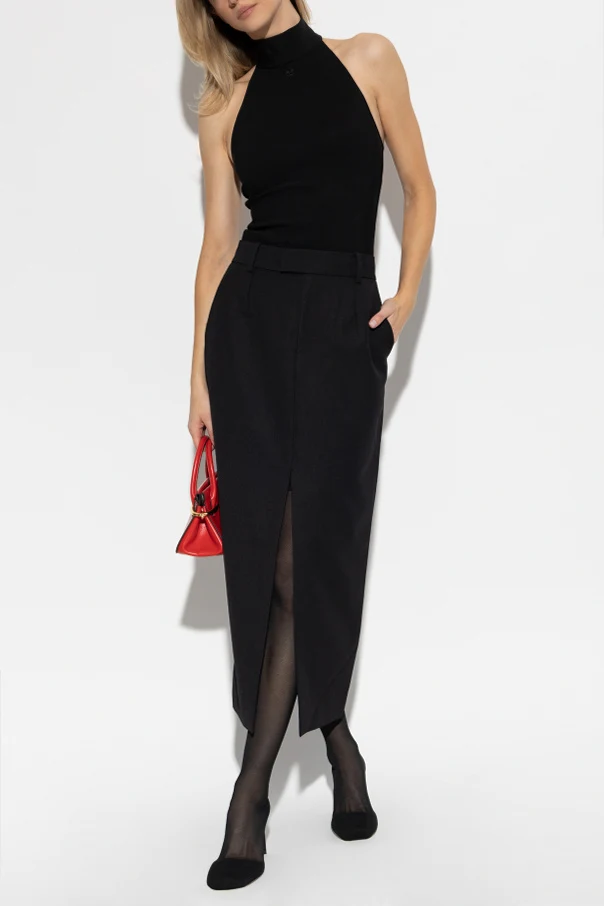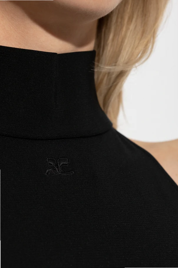 Body mit Turtleneck von Courrèges verkörpert raffinierten Minimalismus in einer futuristischen Silhouette, die für das berühmte französische Modehaus charakteristisch ist. Die figurbetonte, ärmellose Passform mit weit ausgeschnittenen Armlöchern und offenem Rücken im Halter-Neck-Stil betont subtil die Silhouette und garantiert gleichzeitig höchsten Tragekomfort.