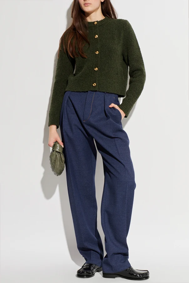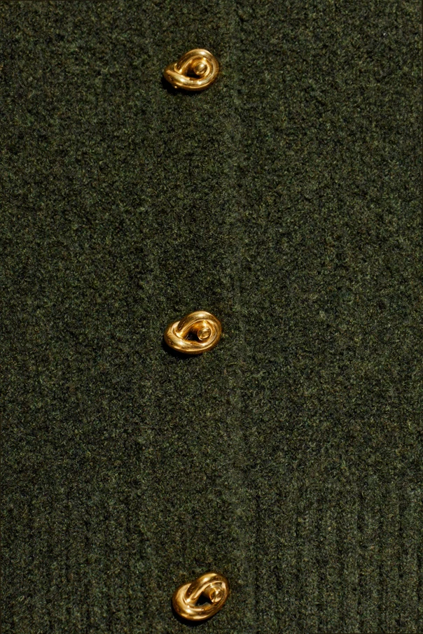 Kardigan mit Wollabschluss von Bottega Veneta ist die Quintessenz raffinierter Ästhetik und zeitloser Klasse. Der tiefgründige, flaschengrüne Farbton fasziniert mit seiner edlen Intensität und unterstreicht auf wunderschöne Weise den besonderen Charakter des Cardigans. Der leicht verkürzte Schnitt sowie die klare Front ohne überflüssige Verzierungen verleihen dem Ganzen eine minimalistische und elegante Ausstrahlung.