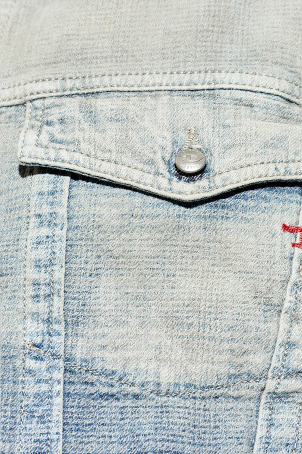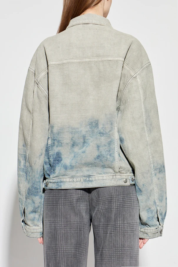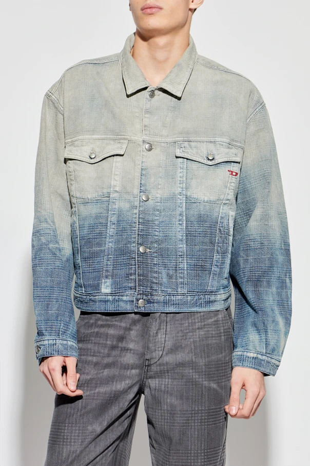 Jeansjacke ‘D-RANGER’ der Marke Diesel ist eine anspruchsvolle Wahl für Kenner zeitloser Mode. Das Modell präsentiert sich in einem blauen Ton mit einem subtilen Farbverlauf – von helleren, fast ätherischen Nuancen bis hin zu einem tief gesättigten Blau – und besticht durch einen modernen, designerhaften Stil.