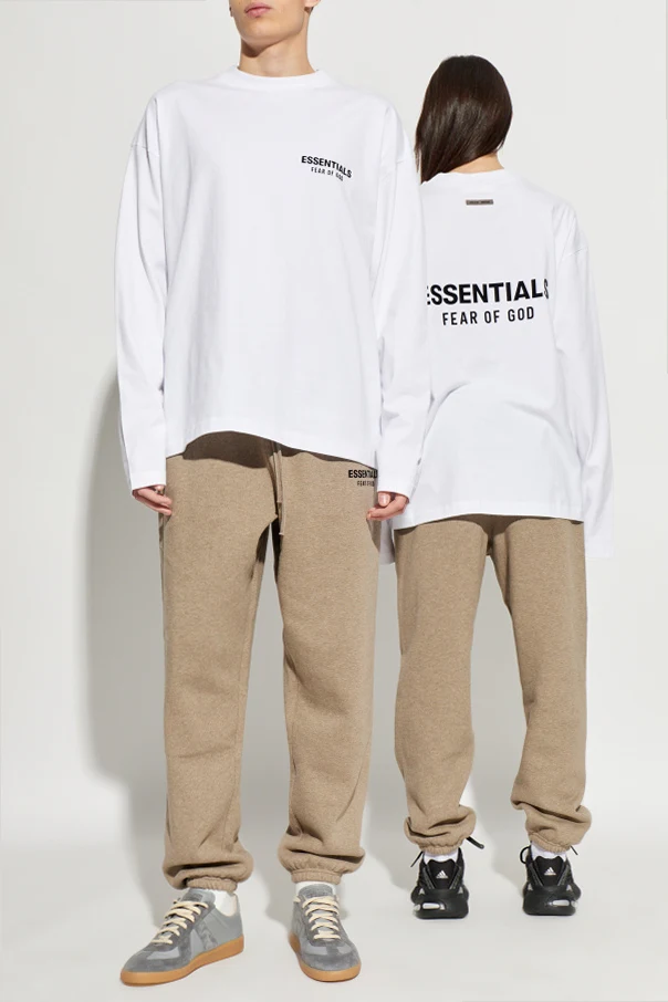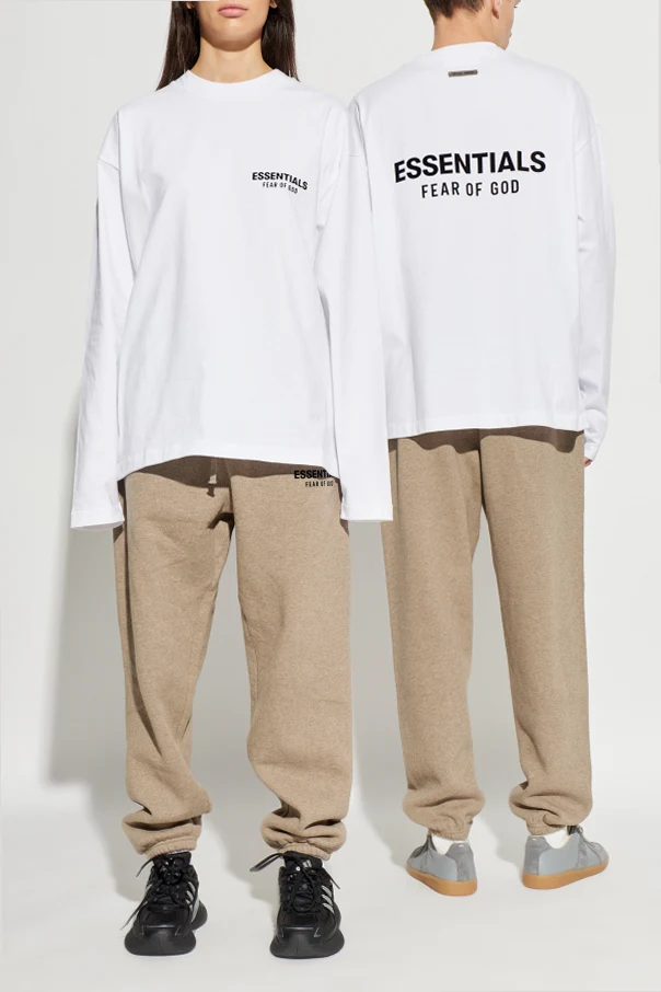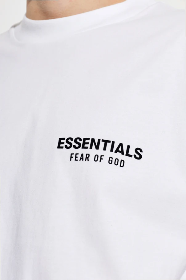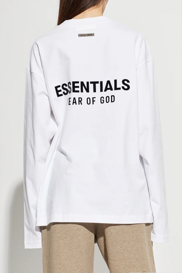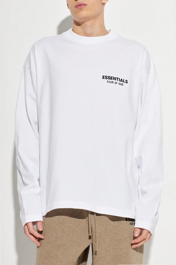 Baumwoll-T-Shirt mit langen Ärmeln ist eine Empfehlung für Kenner anspruchsvoller Alltagsmode. Die weiße Oberfläche bildet den perfekten Hintergrund für den markanten, schwarzen Schriftzug „ESSENTIALS FEAR OF GOD“, der auf der linken Brust platziert ist, sowie für das majestätische, auf dem Rücken wiederholte Logo.