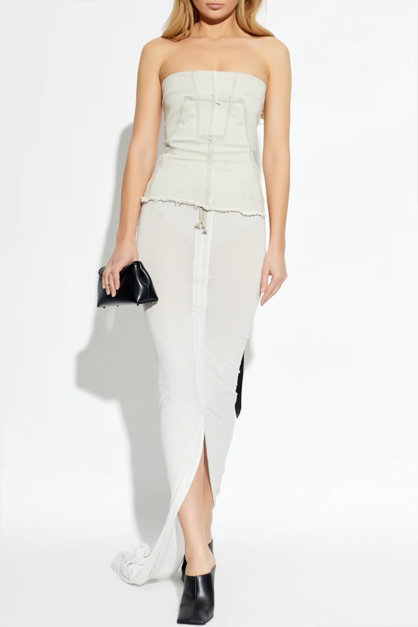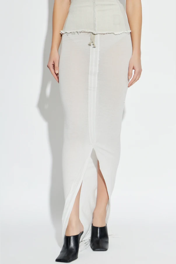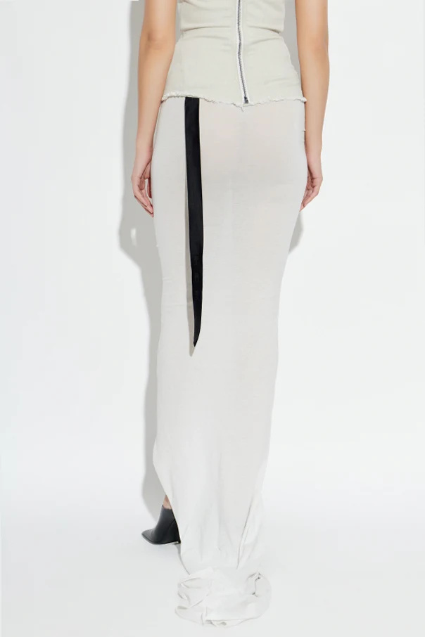 Langer Rock mit Schlitz ist ein erlesenes Modell aus der Rick Owens DRKSHDW Kollektion, das für Frauen geschaffen wurde, die subtile Eleganz und Raffinesse schätzen. Die figurbetonte Passform und die maximale Länge in Verbindung mit einem tiefen, sinnlichen Schlitz oberhalb des Knies verleihen dem Look einen einzigartigen, modernen Charakter.