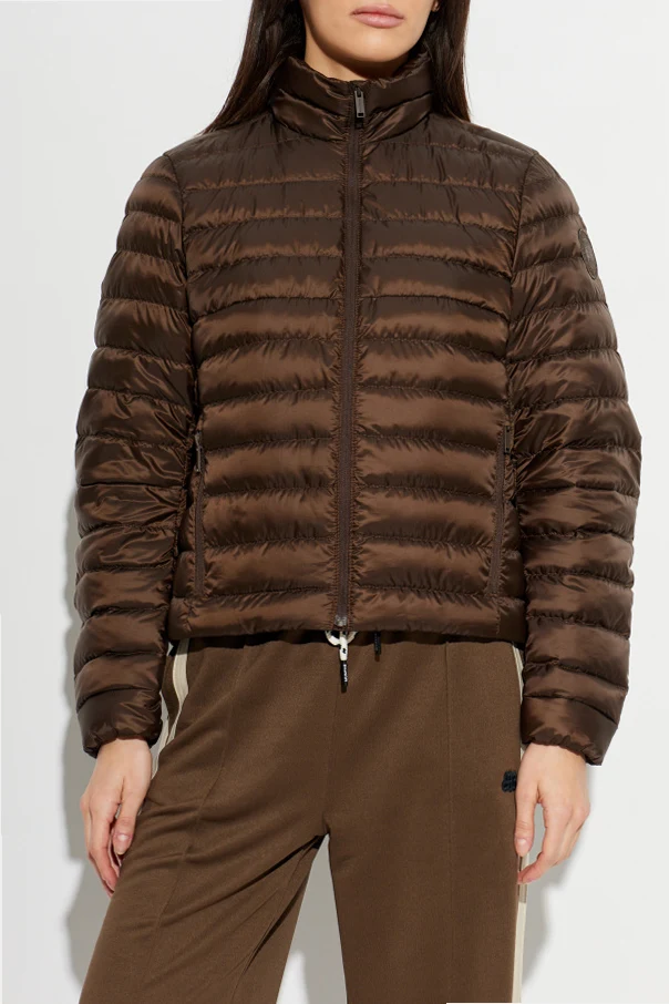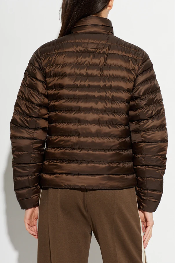 Der braune Farbton verleiht Charakter und unterstreicht die exklusive Dimension des Kleidungsstücks, das sich ideal mit sowohl Tages- als auch Abendoutfits kombinieren lässt. Die Jacke ist aus leicht glänzendem, synthetischem Gewebe gefertigt, das wind- und feuchtigkeitsabweisend ist. Die Füllung aus natürlicher Daune sorgt für hervorragende Wärmeisolierung, während der integrierte Stehkragen die Halsregion dezent vor Kälte schützt.