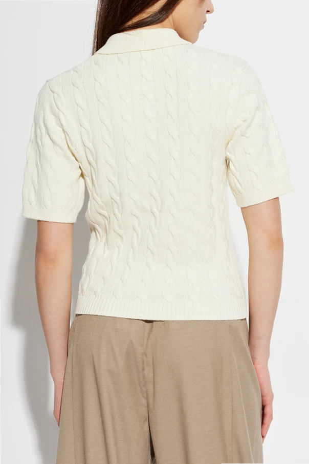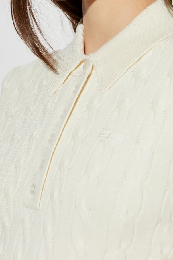 Besonders ins Auge fällt das markante, geflochtene Muster („cable knit“), das dem Strick eine edle, dreidimensionale Struktur verleiht. Das weiche, sorgfältig ausgewählte Garn erinnert an exklusive Kollektionen – die durchdachte Komposition aus Viskose und Polyester garantiert hohen Tragekomfort und Langlebigkeit. Der klassische, gerippte Polokragen sowie die cremefarbenen Knöpfe unterstreichen den universellen Charakter des Stücks.