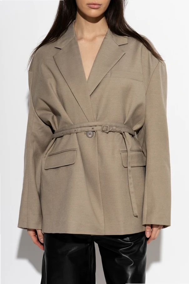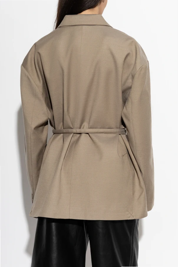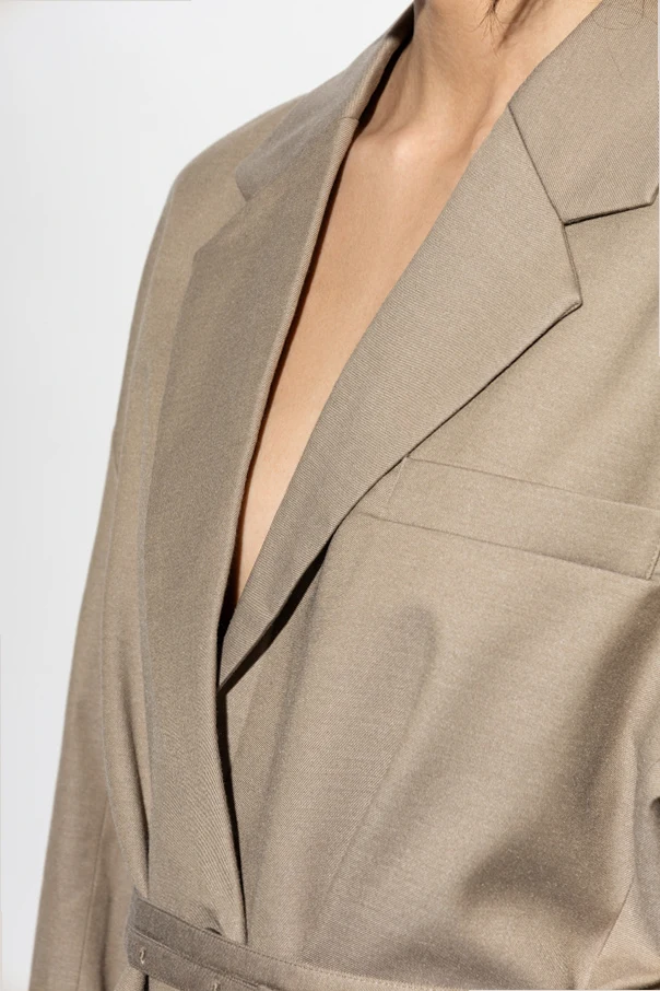 Ein charakteristisches Detail ist der Verschluss mit Gürtel , der es ermöglicht, das Sakko individuell an die Silhouette anzupassen und die Taille zu betonen. Für Komfort sorgen die sorgfältig eingenähten drei Taschen – zwei seitliche Pattentaschen und eine praktische Brusttasche.
