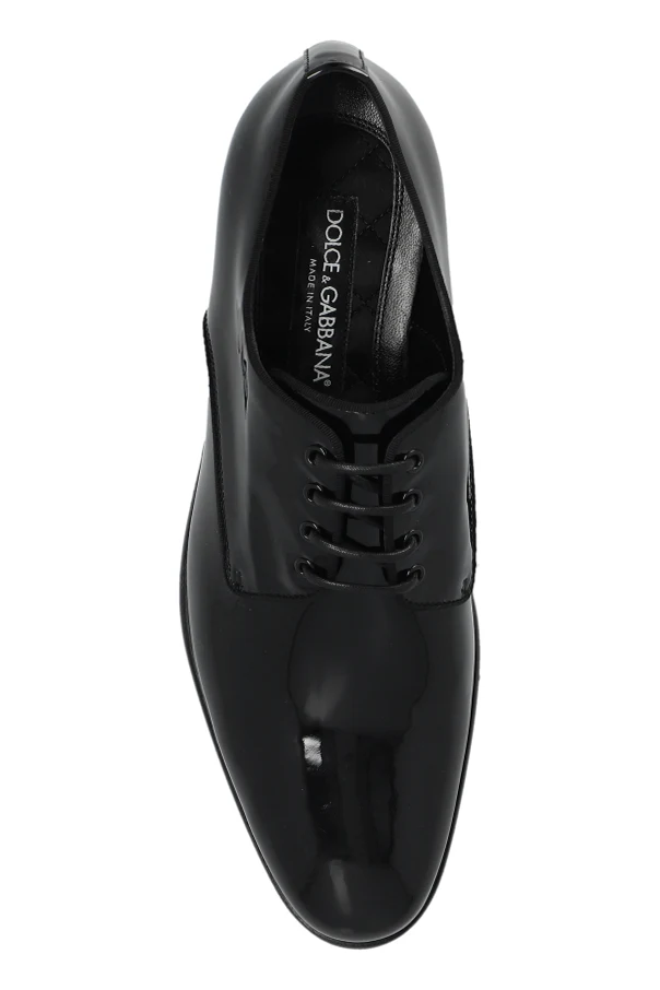 Wir präsentieren Ihnen Lederschuhe aus der exklusiven Kollektion des renommierten Designers Dolce & Gabbana . Diese eleganten, geschnürten Schuhe sind aus hochwertigem Lackleder gefertigt, was ihnen ein glänzendes, luxuriöses Aussehen verleiht.