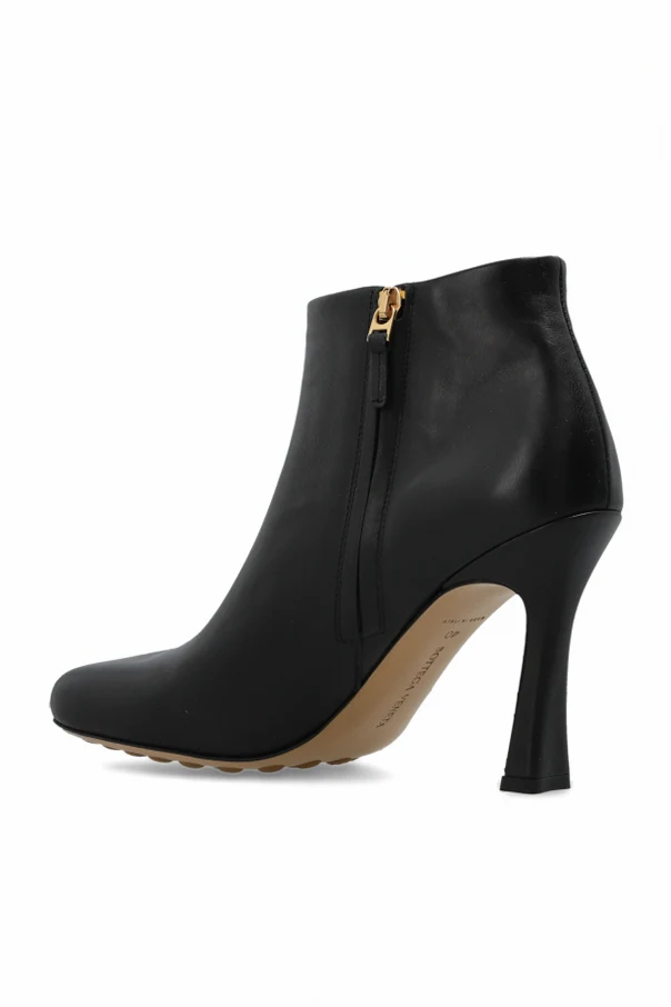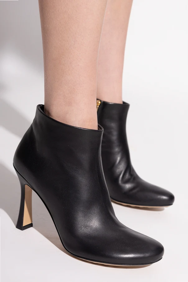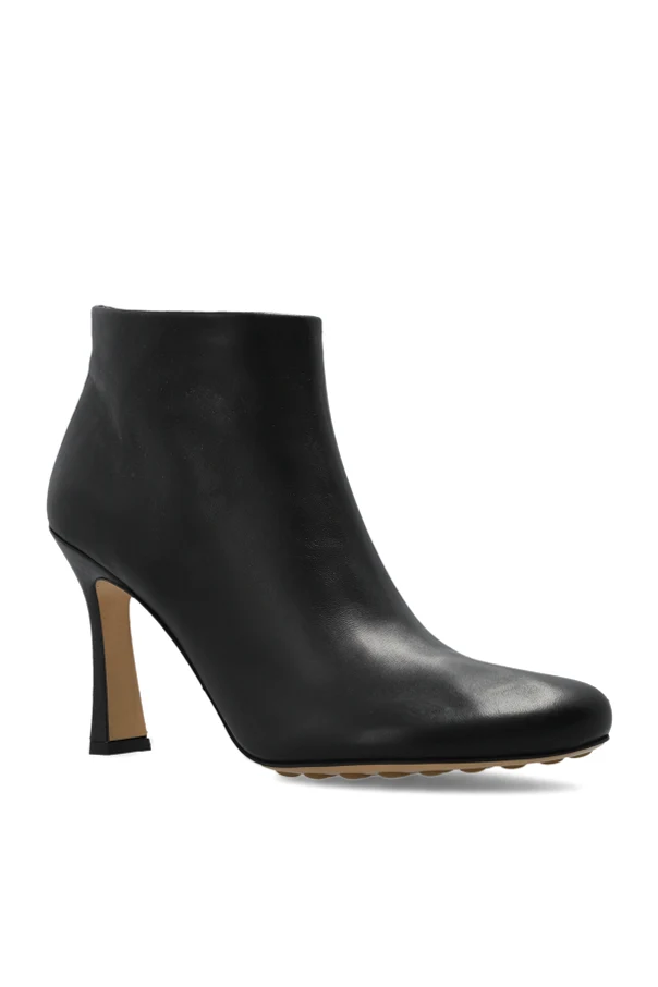 Stiefeletten mit Absatz „Rana“ von Bottega Veneta sind die Quintessenz von Luxus und raffinierter Eleganz. Ihre klassische, elegante Linie, die über den Knöchel reicht und die dezent abgerundete Vorderpartie, unterstreicht den außergewöhnlichen Charakter jedes Outfits. Die Schuhe wurden aus hochwertigem, glattem Leder gefertigt, das durch einen bezaubernden, satinierten Glanz in Schwarz besticht und dem Ganzen zeitlose Eleganz verleiht.