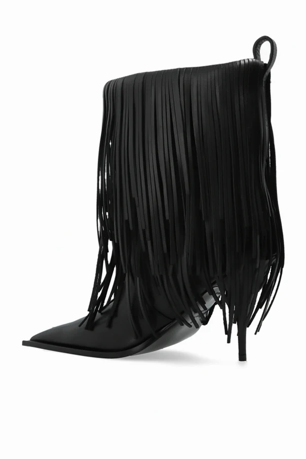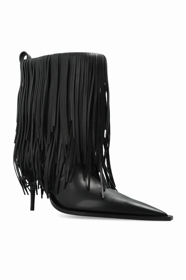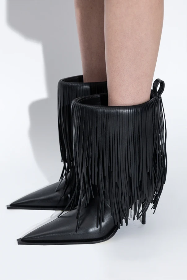 Den Abschluss bildet ein breiter Streifen aus langen, dichten Fransen, der den gesamten Schaft umschließt und für Bewegung sowie einen unverwechselbaren, dekorativen Ausdruck sorgt. Hinten befindet sich eine komfortable, meisterhaft gearbeitete Schlaufe, die das Anziehen erleichtert. Das Fehlen sichtbarer Schriftzüge oder Logos bewahrt ihre zeitlose Diskretion.