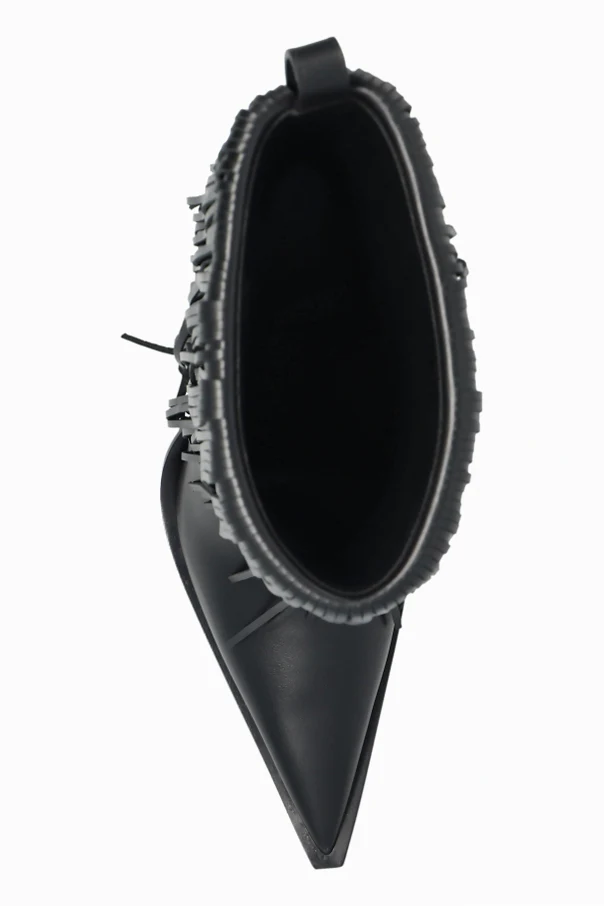 Stiefeletten mit Absatz ‘Avenue’ von Balenciaga begeistern durch ihre raffinierte Form und exquisite Verarbeitung. Das tiefe, klassische Schwarz betont elegant die schlanke Silhouette der Schuhe, die aus glattem, leicht glänzendem Premiumleder gefertigt sind. Die stark spitz zulaufende Kappe sowie der sinnliche Stiletto-Absatz verleihen dem Ganzen eine außergewöhnliche und ausdrücklich exklusive, dynamische Ausstrahlung.