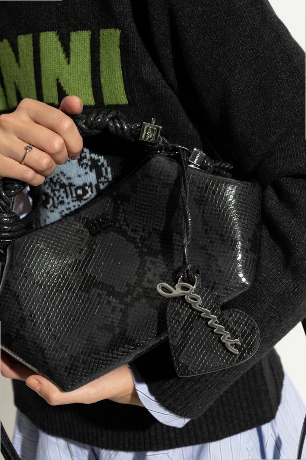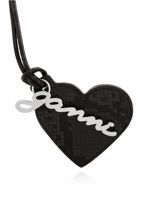 Anhänger mit Spiegel der Marke Ganni ist ein raffiniertes Accessoire, das Liebhaberinnen anspruchsvoller Details begeistern wird. Er besticht durch seine herzförmige Silhouette mit perfekt ausgewogenen Konturen, gehalten in klassischem, tiefem Schwarz. Die Vorderseite besteht aus fein geprägtem Material mit dezentem Glanz, inspiriert von exotischen Tierenmotiven. Die Rückseite schmückt ein gläserner Spiegel, der perfekt in eine gleichfarbige Umrahmung eingefasst ist.