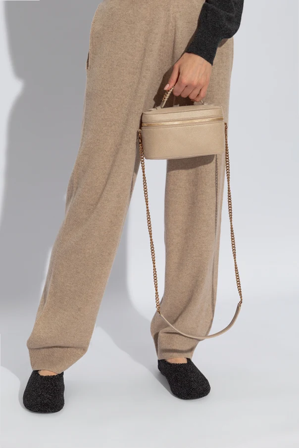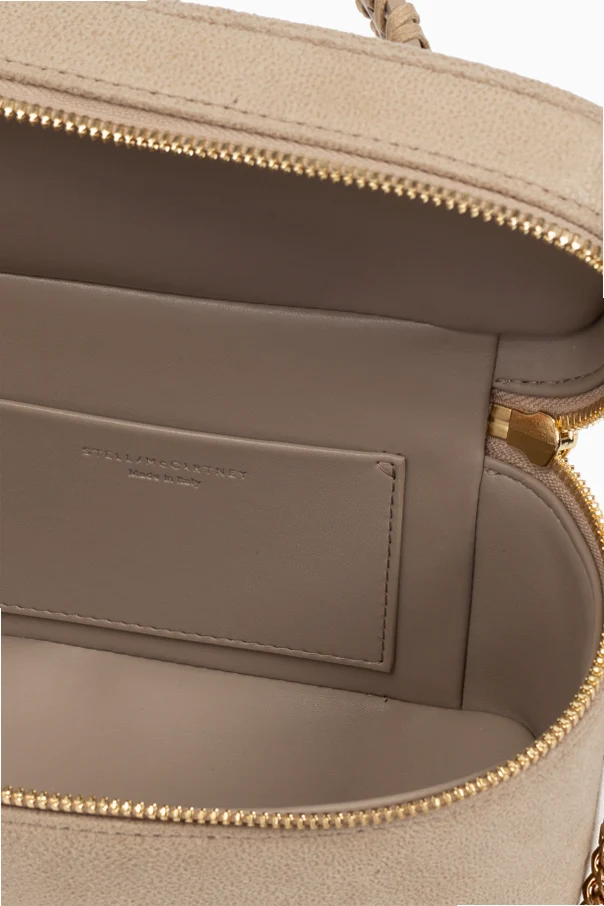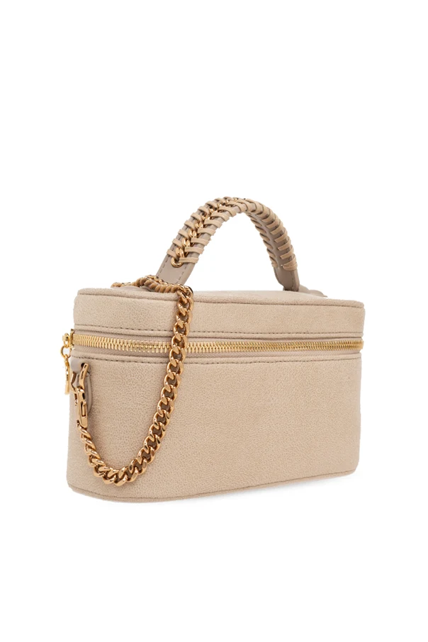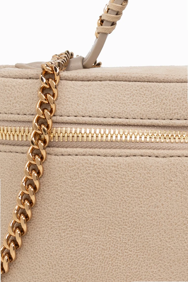 Charakteristische goldene Metallakzente, einschließlich einer schweren Kettenschulterriemen und eines Reißverschlusses, verleihen dieser Tasche einen unverwechselbaren, luxuriösen Charakter. Die sorgfältig verarbeiteten Kettenglieder sind ein Markenzeichen der „Falabella“-Designs, die die Einzigartigkeit und den Prestige der Marke unterstreichen. Im Inneren der Tasche befindet sich das geprägte Logo des Designers, welches Authentizität und hohe Qualität garantiert.