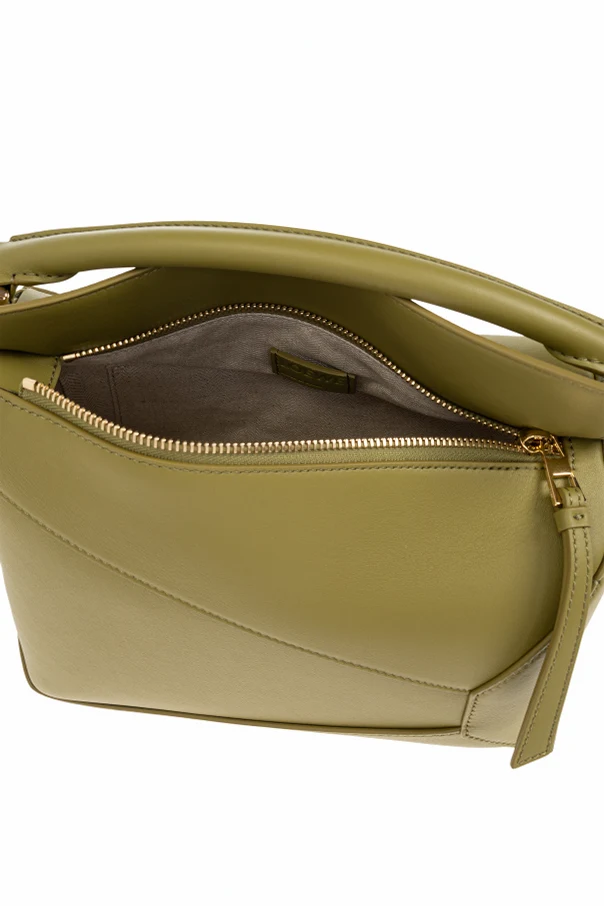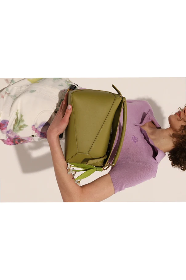 Die Handtasche Small Puzzle von Loewe verkörpert die Quintessenz raffinierten Designs, in dem zeitlose Tradition auf moderne Gestaltung trifft. Die einzigartige, geometrische Form, gefertigt aus asymmetrischen, rechteckigen Paneelen, begeistert mit ihrer Anordnung, die an ein kunstvolles Puzzle erinnert. Subtile, gestickte Linien in geometrischen Figuren betonen den mehrteiligen Charakter des Designs.