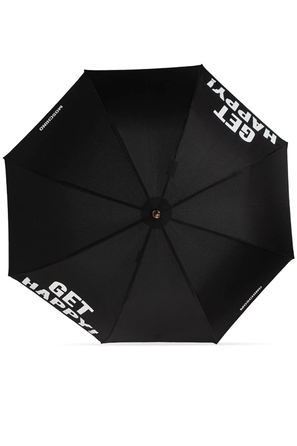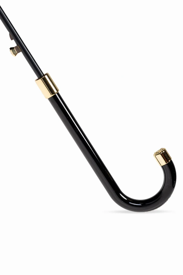 Entdecken Sie den MOSCHINO Regenschirm – ein außergewöhnlich raffiniertes Accessoire, das sich durch seine klassische Konstruktion und den geschwungenen „J“-Griff auszeichnet. Das minimalistische schwarze Schirmdach ist mit markanten, weißen Schriftzügen „GET HAPPY!“ sowie dem emblematischen Logo des Modehauses MOSCHINO verziert und betont so seine Einzigartigkeit. Die Außenhülle ist aus hochwertigem, glattem Synthetikgewebe gefertigt und garantiert außergewöhnliche Langlebigkeit und Widerstandsfähigkeit gegen Regen – gleichzeitig bleibt sie samtig-elegant im Griff. Goldene Metalldetails am Griff sowie am Öffnungsmechanismus – mit schwarz lackiertem Griff – verleihen dem Ganzen eine luxuriöse und anspruchsvolle Note.