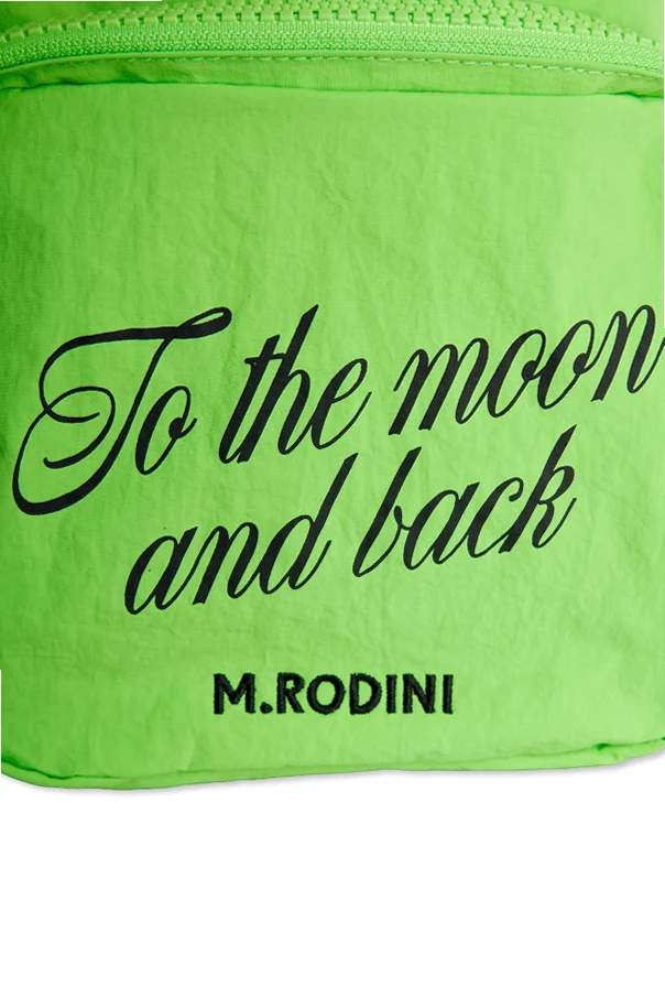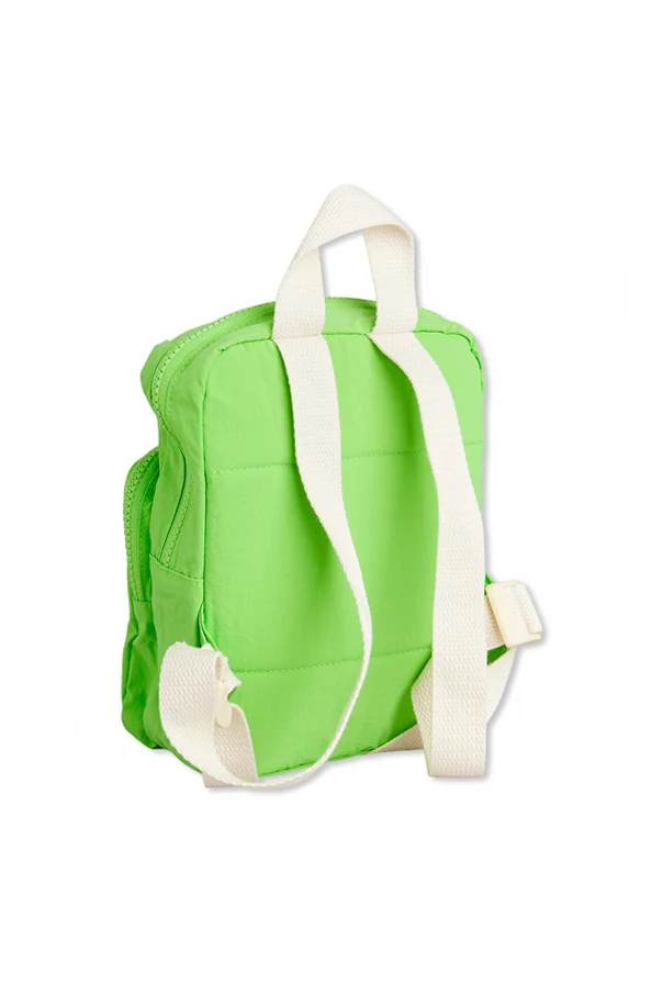 Rucksack mit gesticktem Logo der Marke Mini Rodini ist die Quintessenz bewusster Eleganz, entworfen, um die Individualität der Jüngsten zu unterstreichen. Die harmonische, rechteckige Form mit dezent abgerundeten Kanten und das außergewöhnlich glatte Material begeistern durch sorgfältige Verarbeitung. Intensives, neonfarbenes Grün zieht alle Blicke auf sich und betont den einzigartigen Charakter des Produkts.