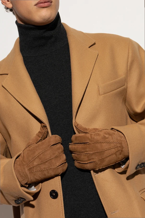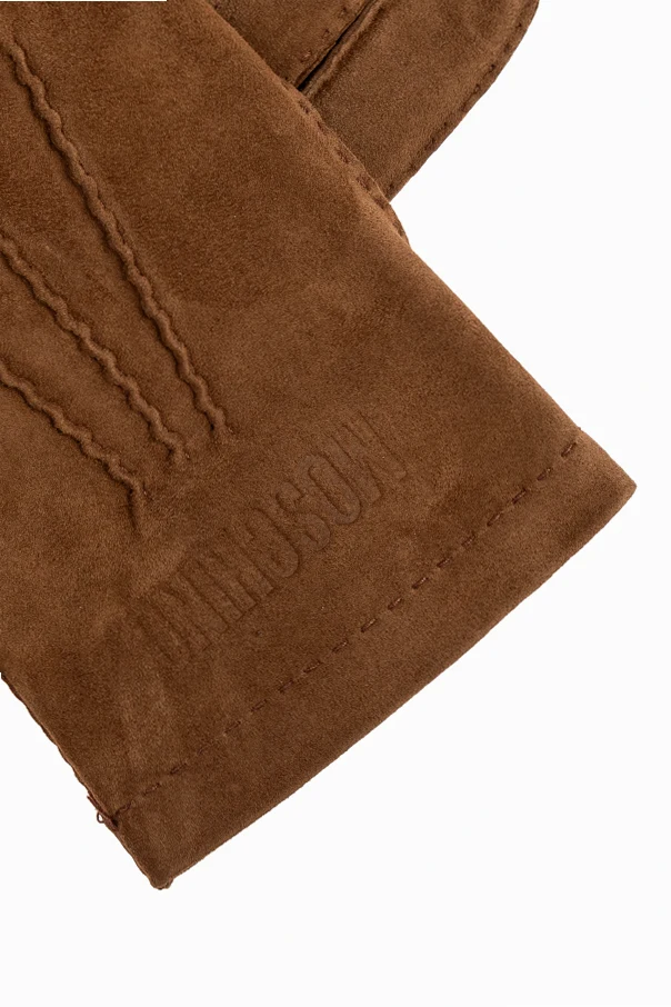 Wildlederhandschuhe mit gesticktem Logo der Marke Moschino verkörpern die Quintessenz zeitloser Eleganz und luxuriösen Stils. Gefertigt aus hochwertigstem Wildleder, begeistern die Handschuhe durch ihre Weichheit und ihren tiefbraunen Farbton, der subtile Eleganz ausstrahlt. Das harmonische, klassische Fünffinger-Design wurde in einem unisex Stil entworfen und passt sich perfekt sowohl Damen- als auch Herrenhänden an.