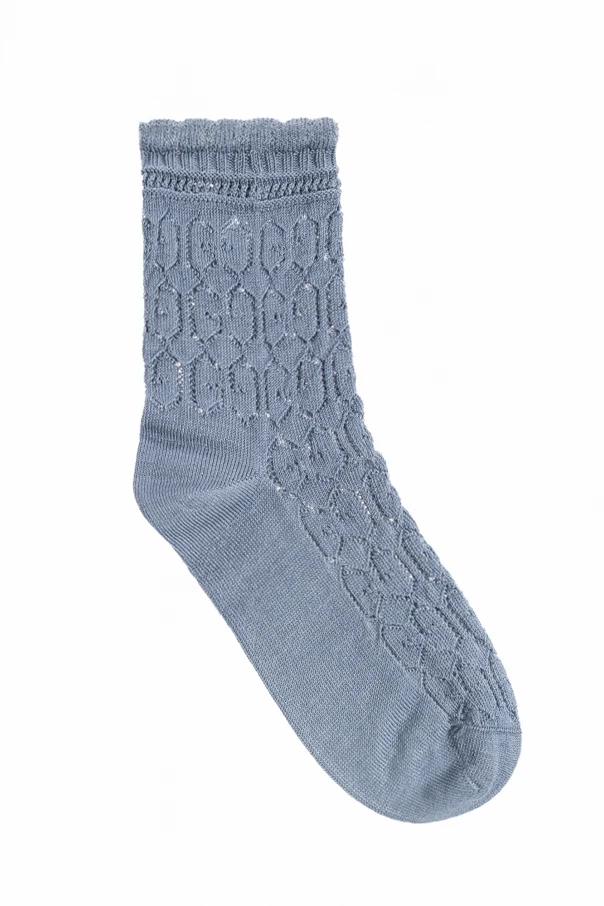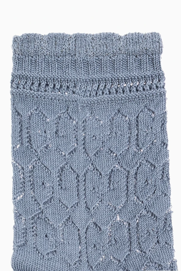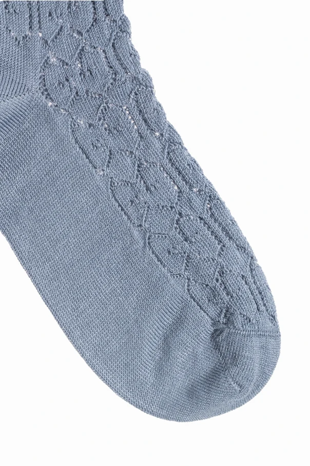 Blue socks from Gucci Kids. Made of cotton, this pair features openwork cut-outs and ribbed cuffs.