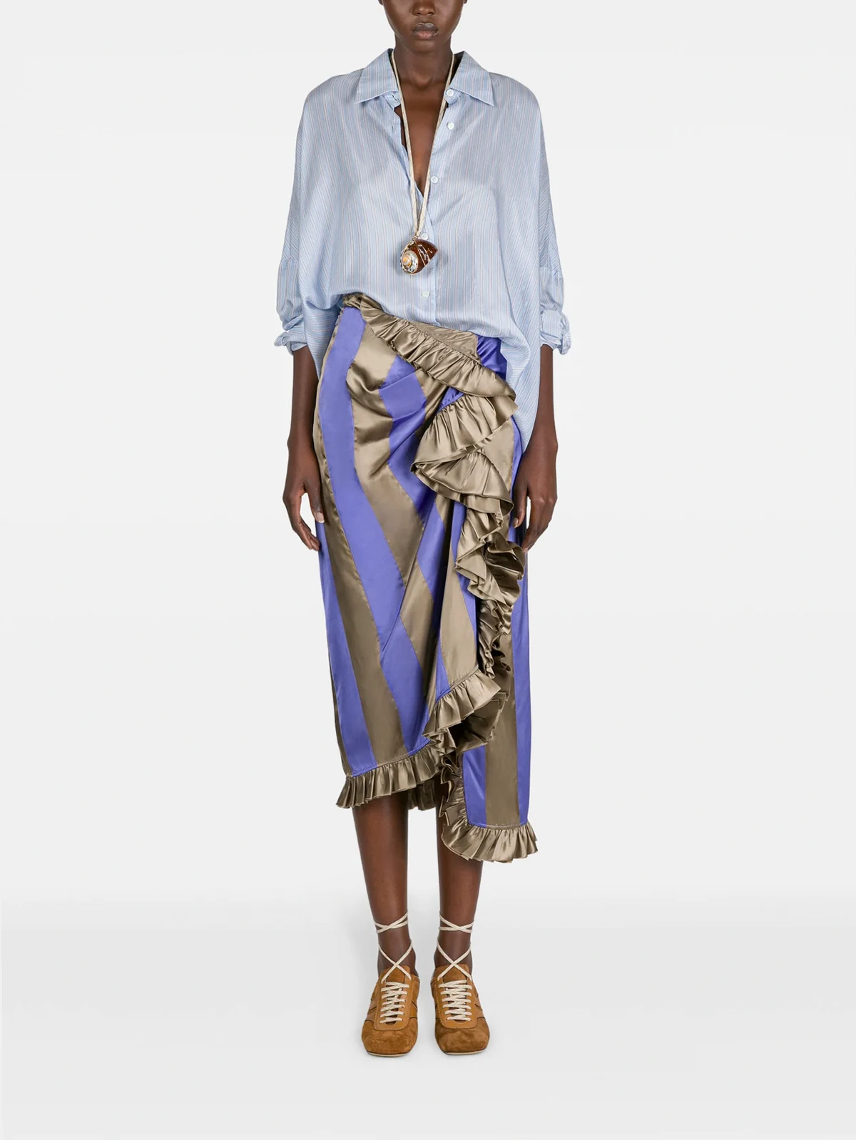 4. Gestreifter Midirock mit Rüschen