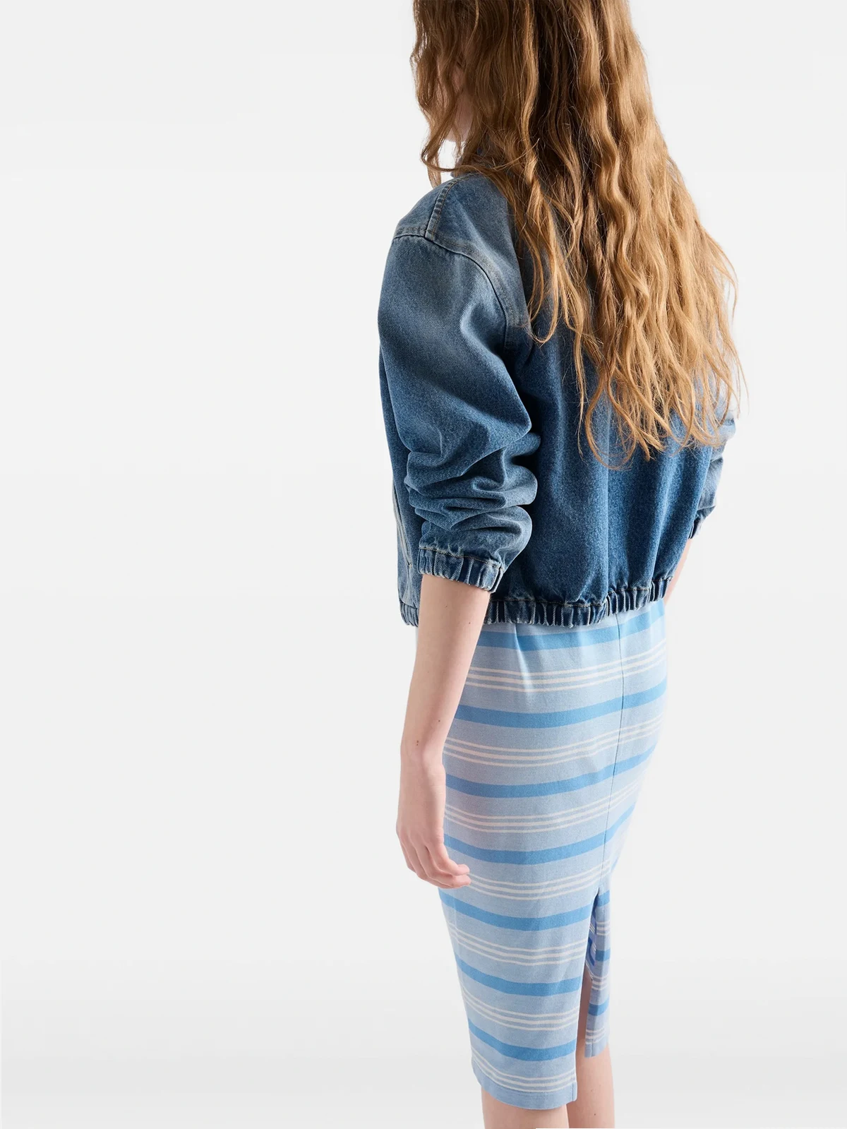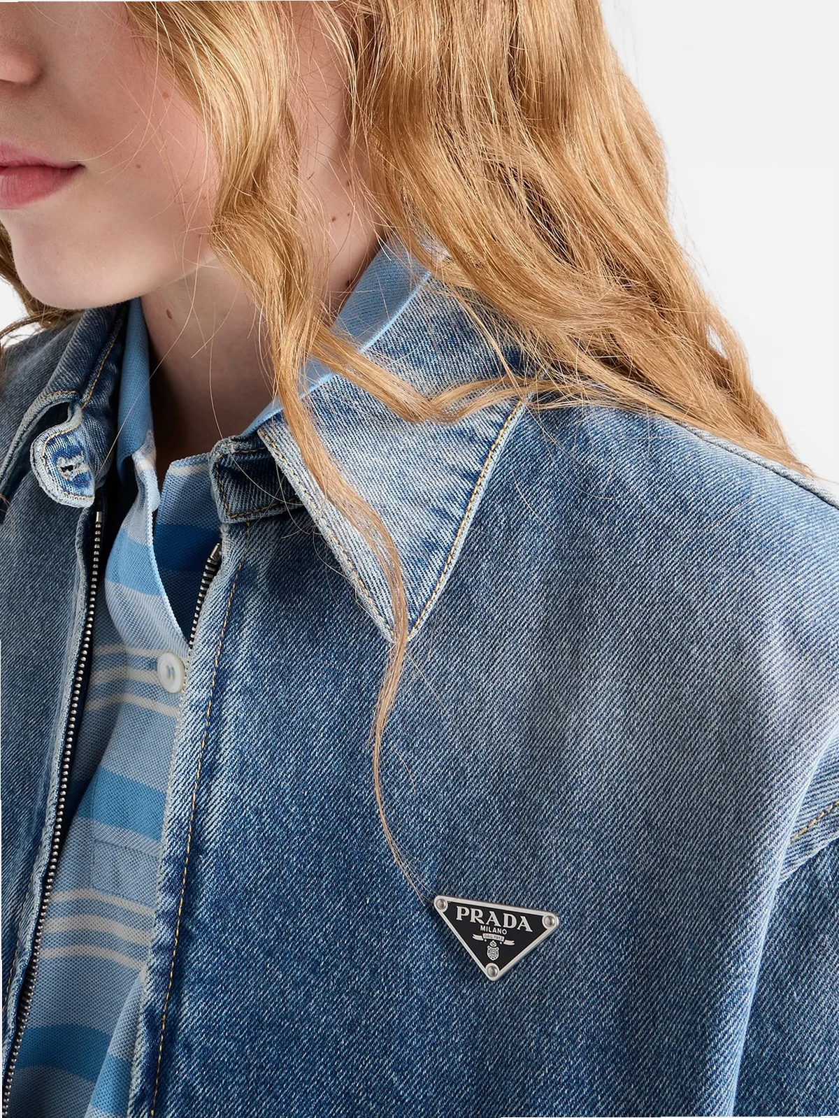 Denim mit einem gealterten Finish verleiht dieser Blouson-Jacke mit klaren Linien Struktur und Charakter. Die vielseitige Silhouette mit elastischen Bündchen und Saum betont das Volumen und wird durch das emaillierte Triangel-Logo aus Metall abgerundet.