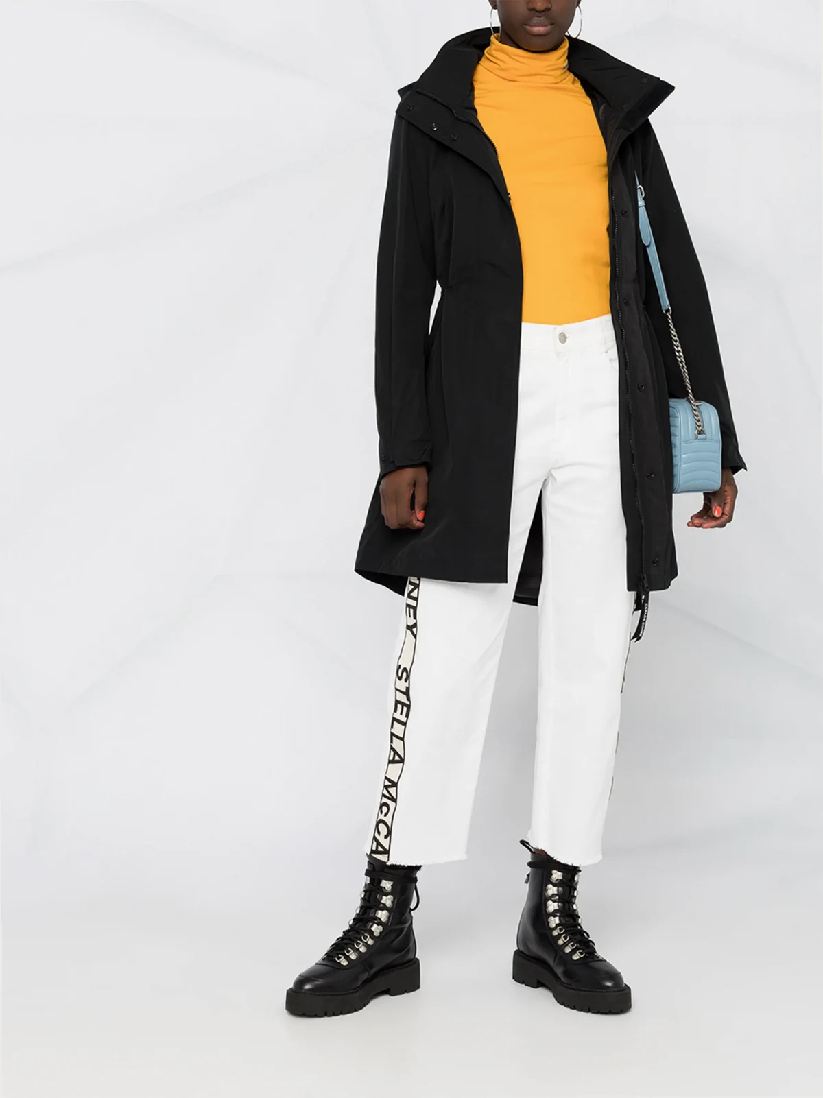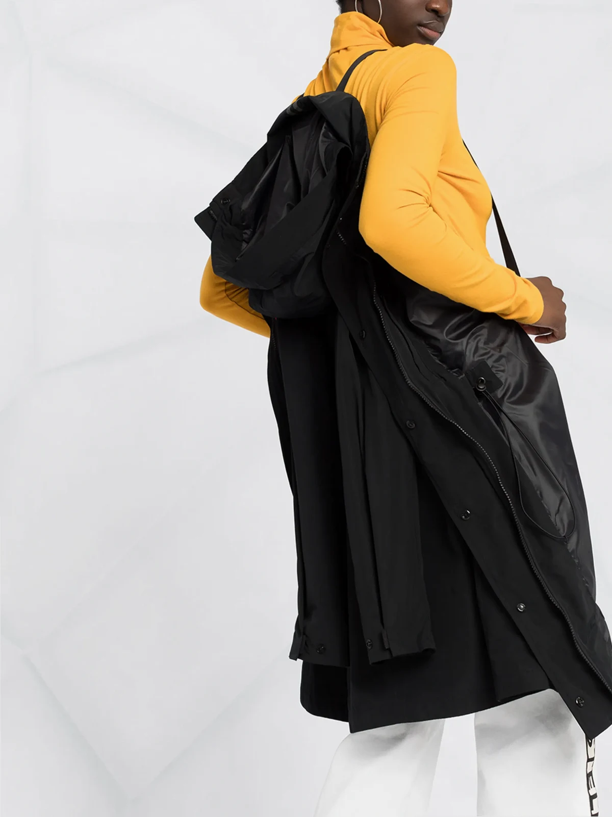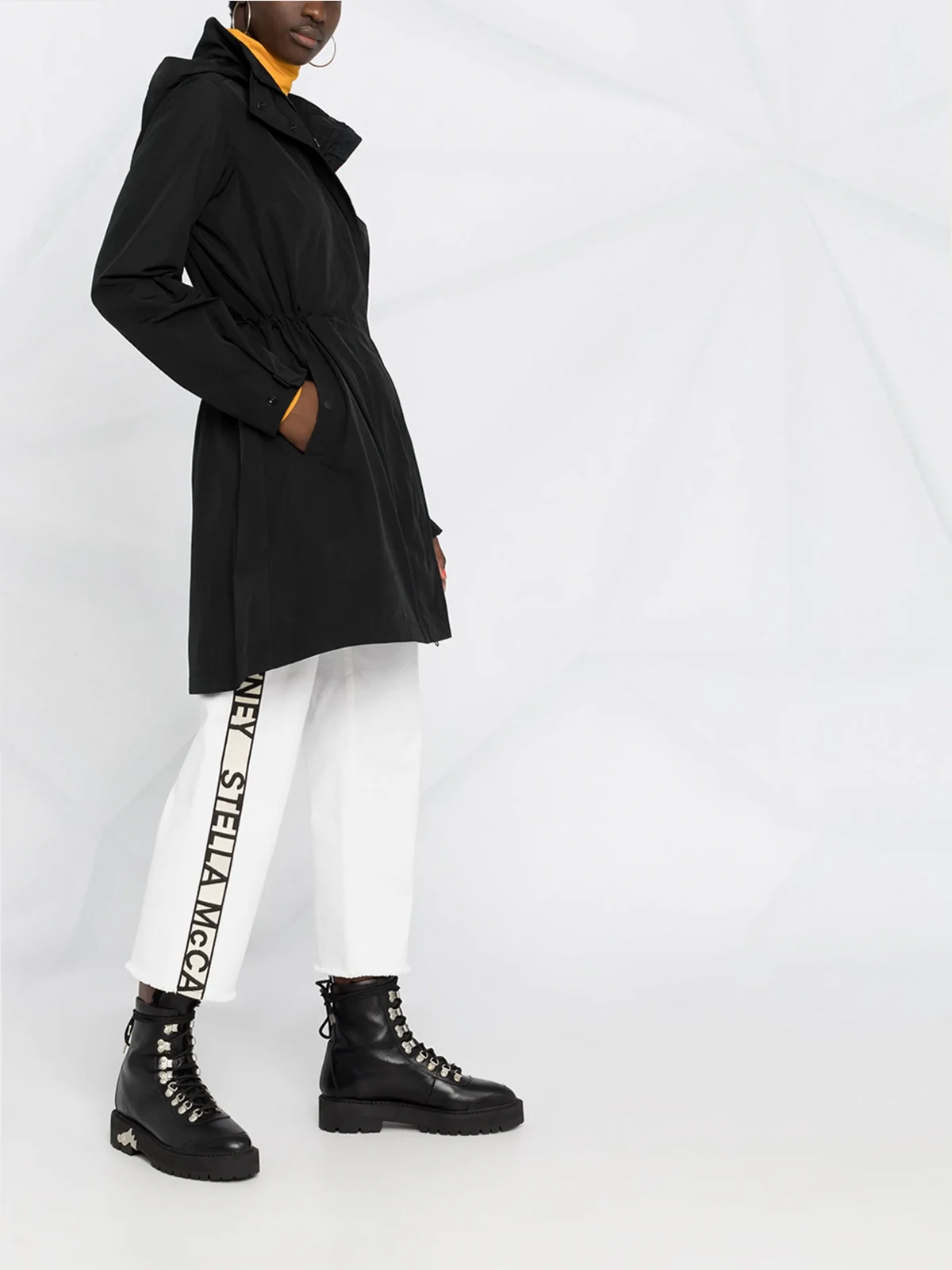 Logo-Patch am Arm, klassische Kapuze, verdeckter Verschluss vorne, lange Ärmel, gerader Saum. Farbe: Schwarz.