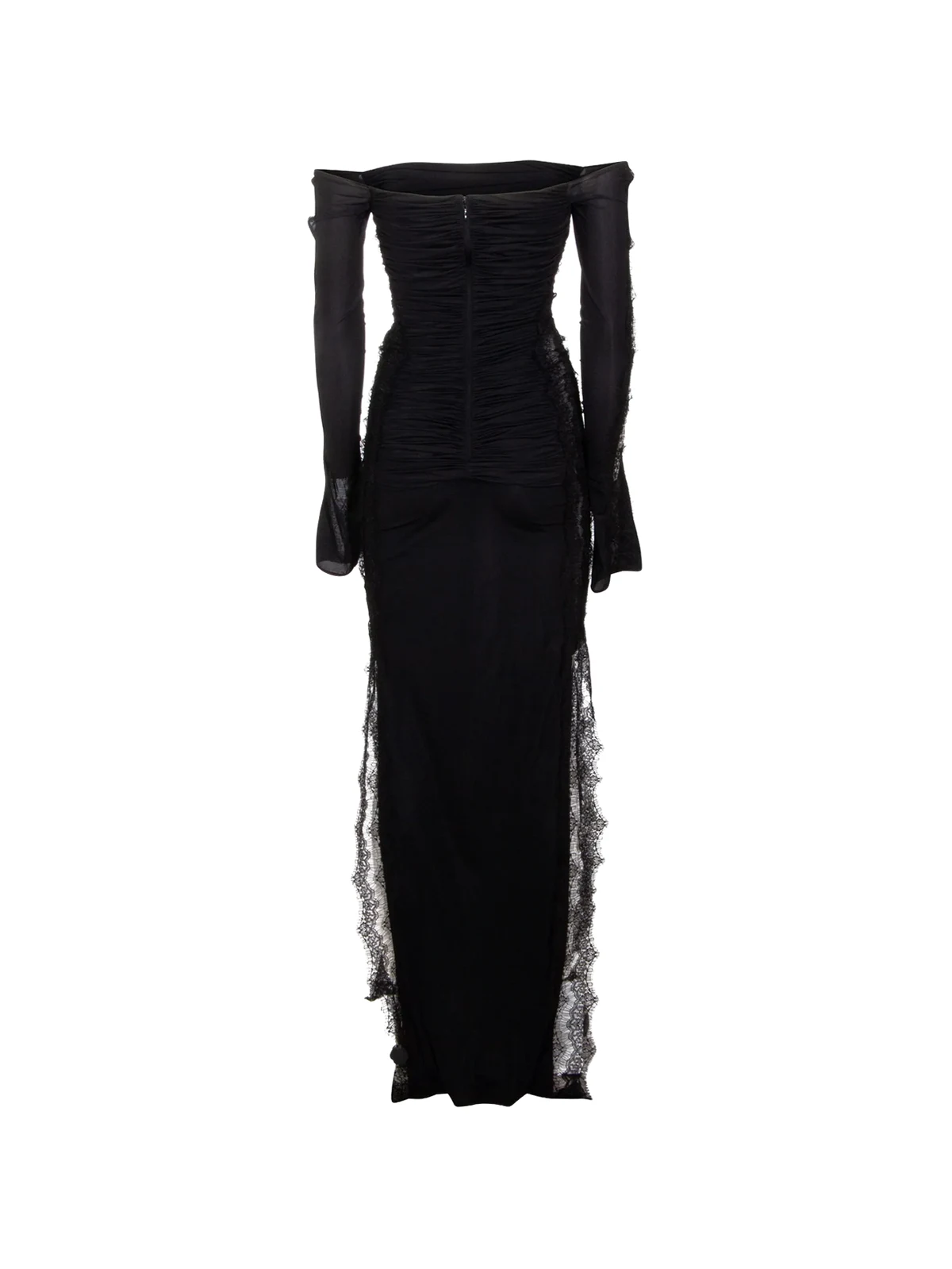 – Plissiertes Midikleid in Schwarz mit Spitzendetail