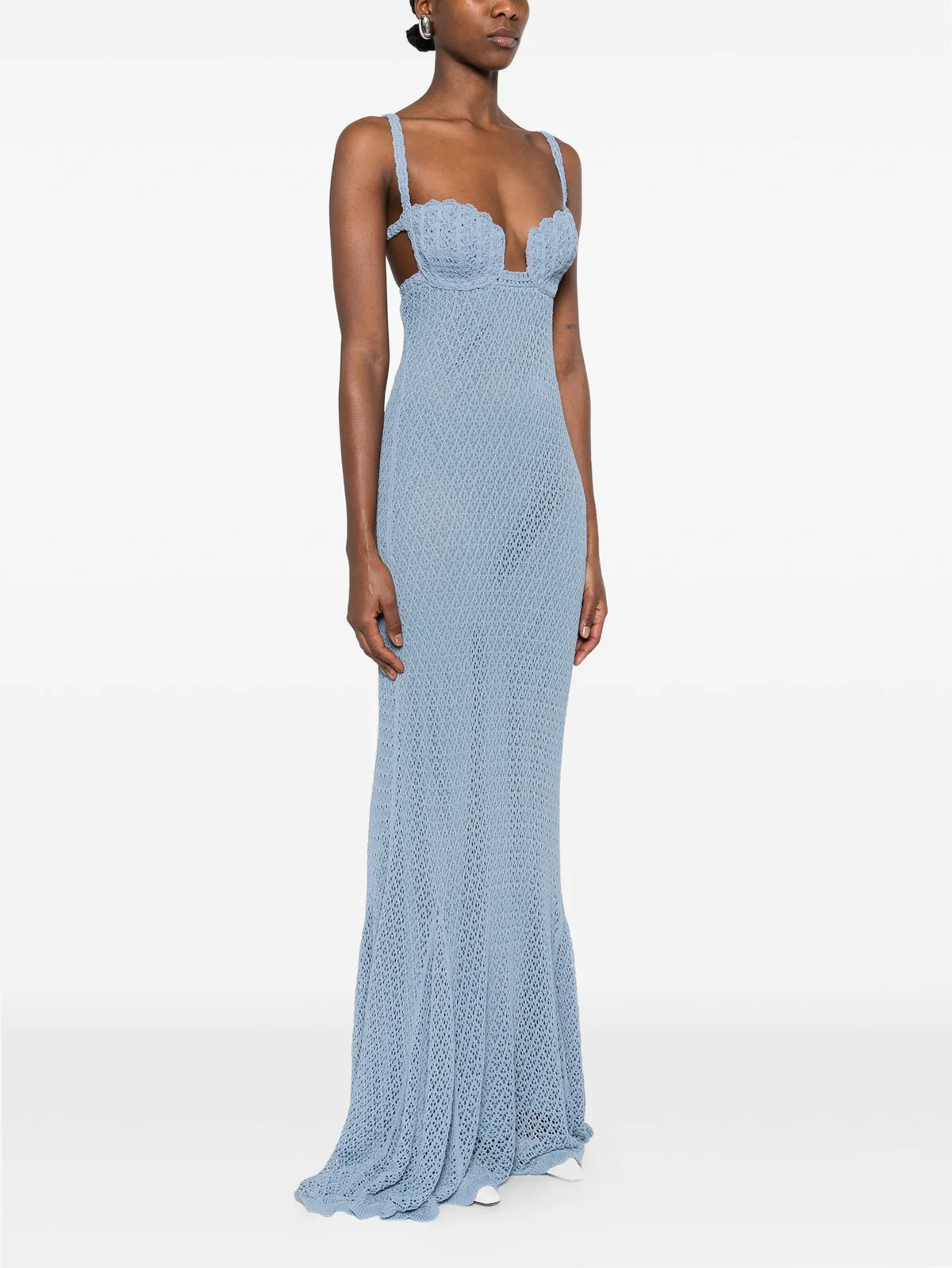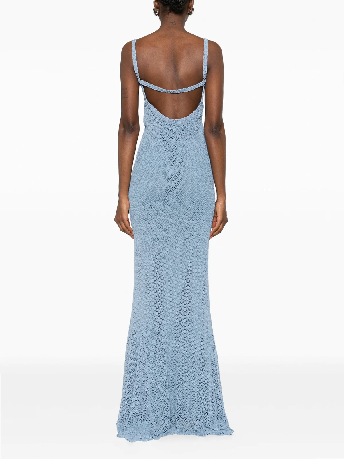– Geformtes, langärmliges Maxikleid in Schokobraun mit gerafftem Bahnendesign