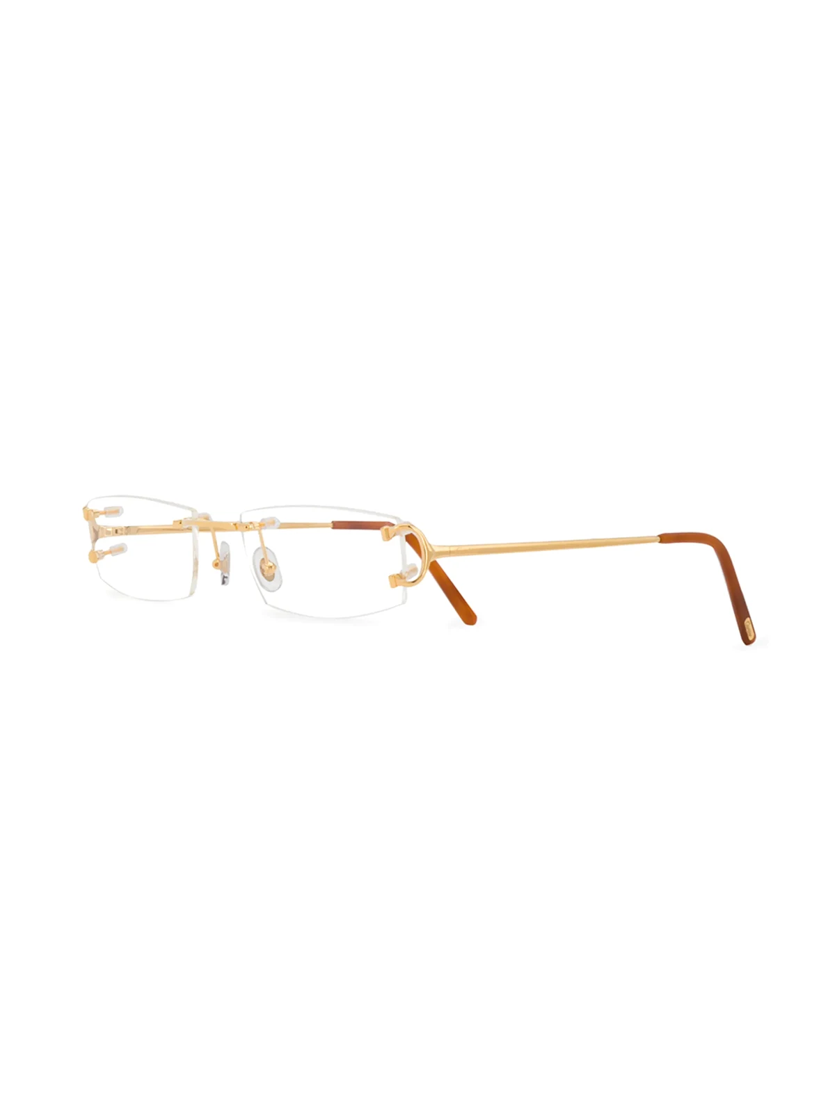 Brille mit eckigem Gestell aus Titan von Cartier. Merkmale: Logo an der Schläfe und gerade Bügel mit angeschrägten Enden. Dieser Artikel wird mit einer Schutzhülle geliefert. Hierbei handelt es sich um einen Unisex-Artikel, dessen Größe in Herrengröße angegeben wird.