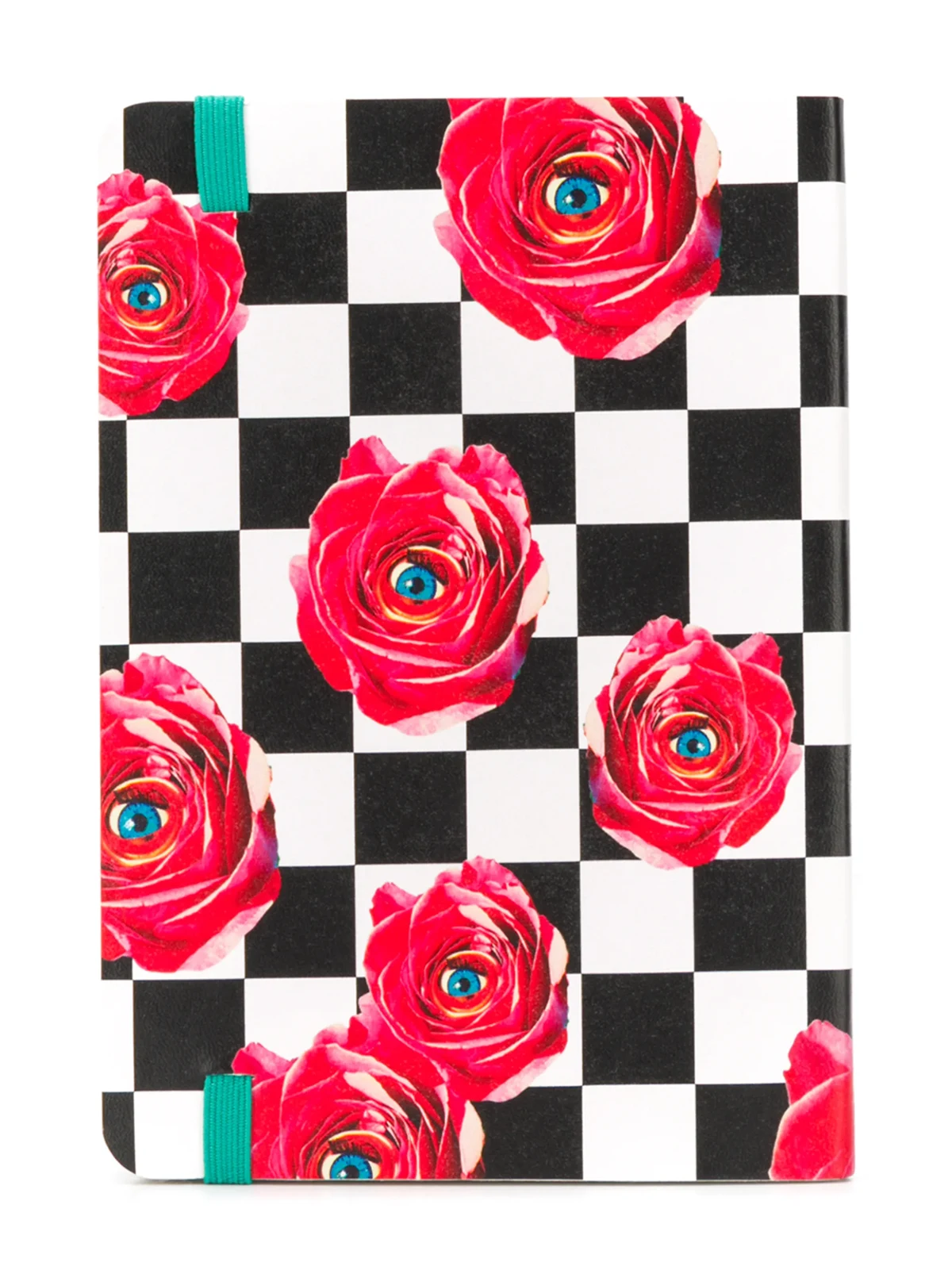 Notizbuch mit Schachbrettmuster aus Papier von seletti. Merkmale: rechteckiges Zifferblatt, elastischer Verschluss und Karomuster.