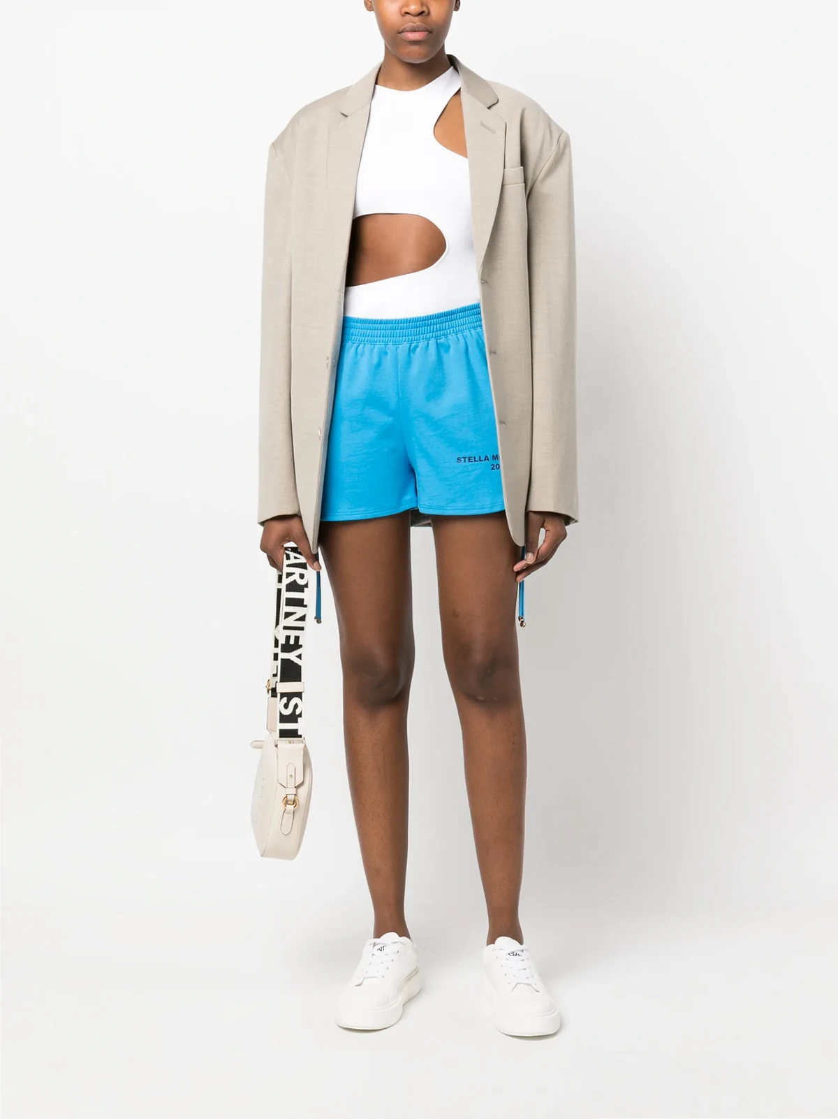 Hellblau, Baumwolle, Logo-Print am Bein, seitlicher Kordelzug, abgerundeter Saum, oberschenkellang, elastischer Bund. . .