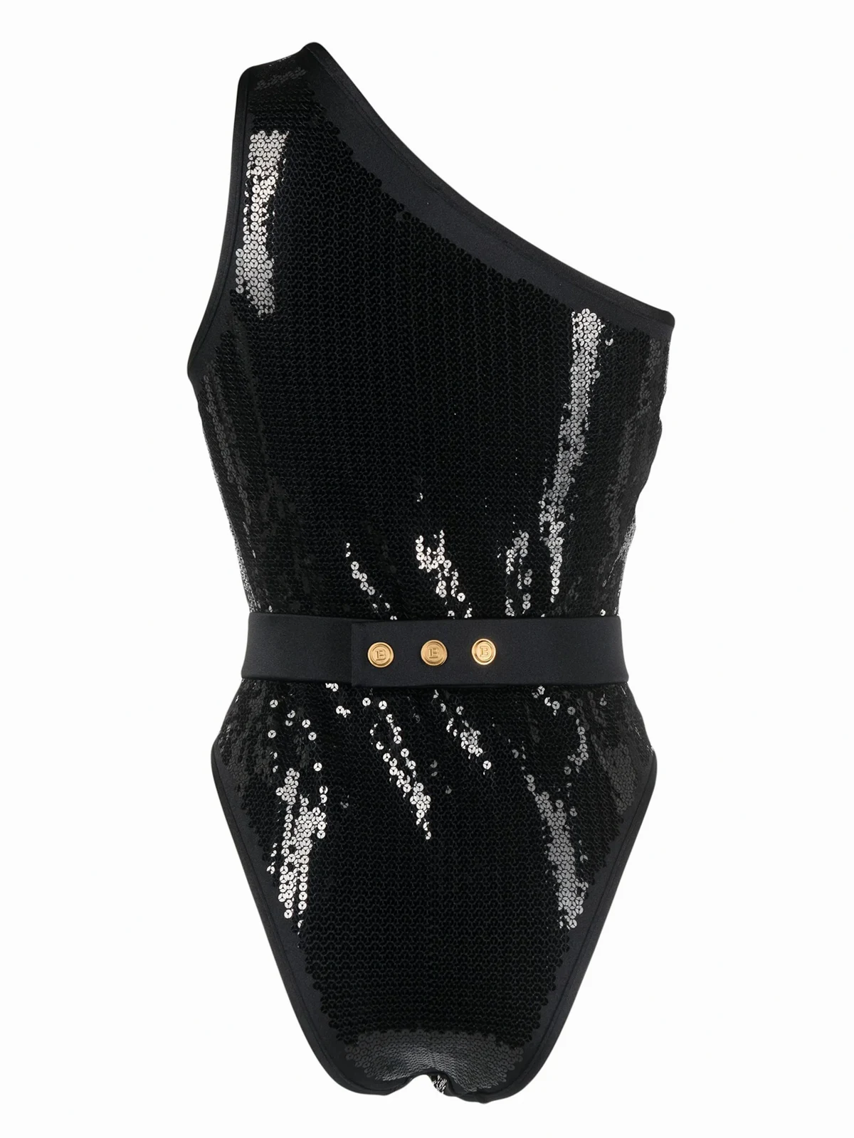Schwarz, Stretch-Design, Paillettendesign, One-Shoulder-Design, hoch sitzend. Swimwear kann nur über Ihrer eigenen Unterwäsche anprobiert werden. Taucherbrille und Schnorchel sind optional....