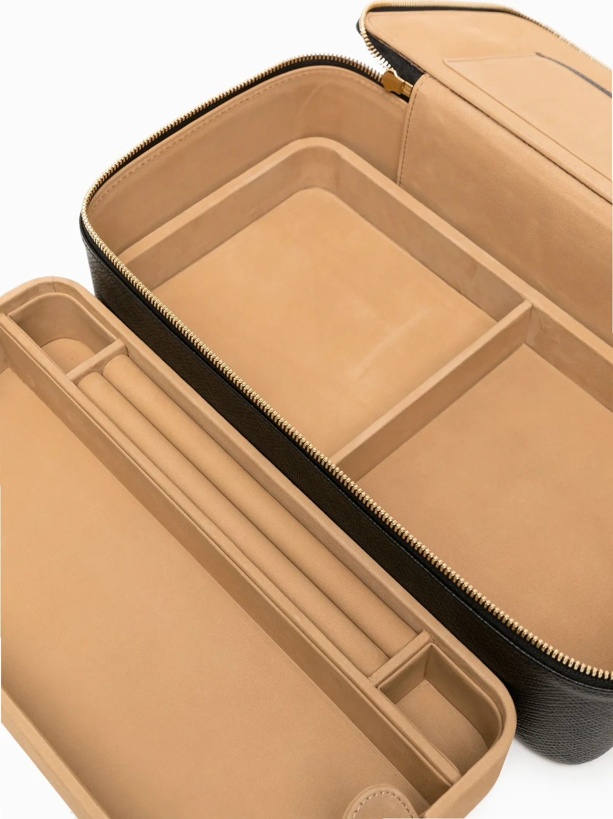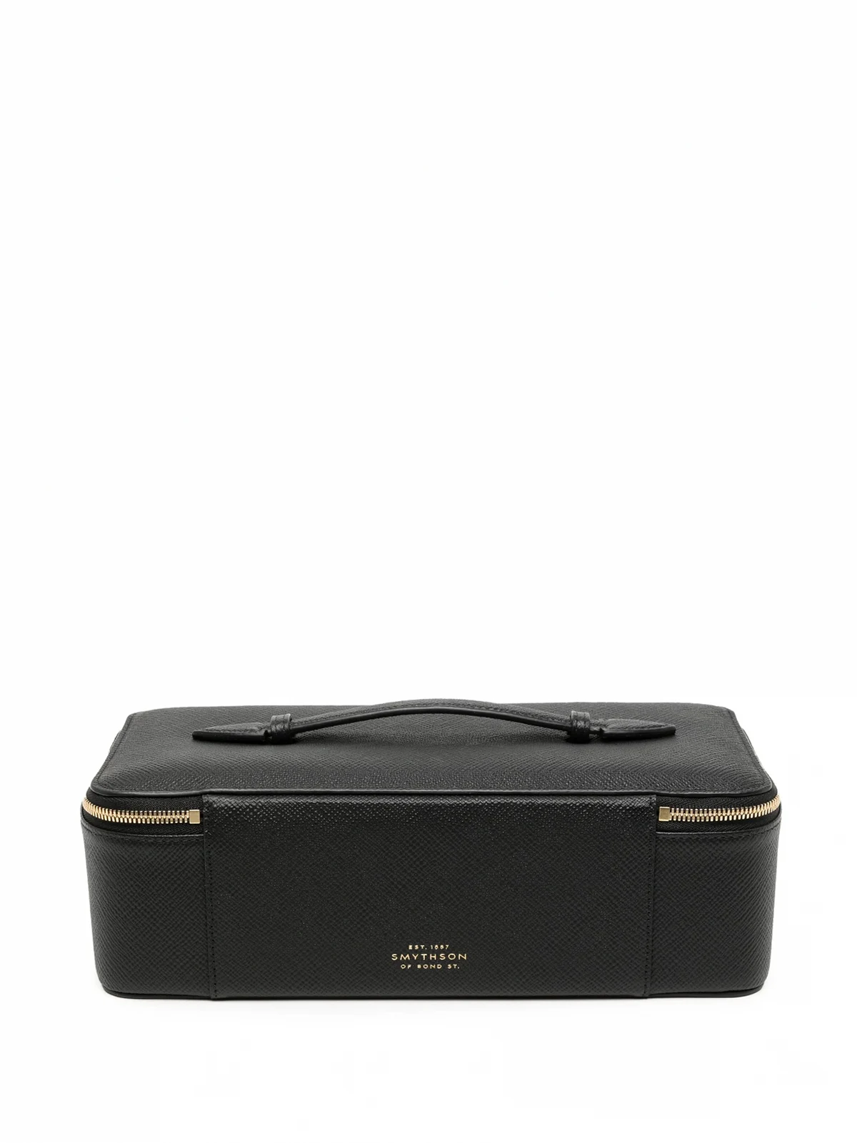 Schwarz, Kalbsleder, Logo-Stempel hinten, einzelner Henkel, Rundumreißverschluss, unterteiltes Fach.