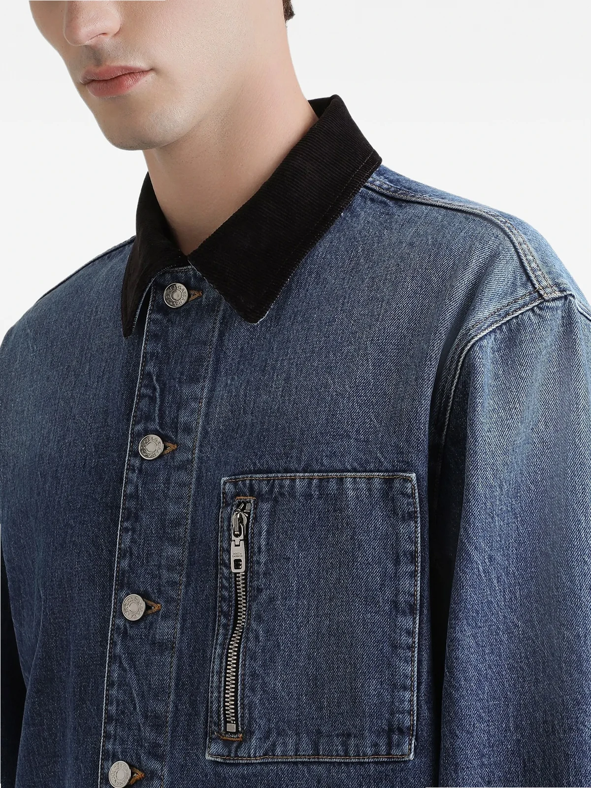 Jeansjacke mit Cordkragen