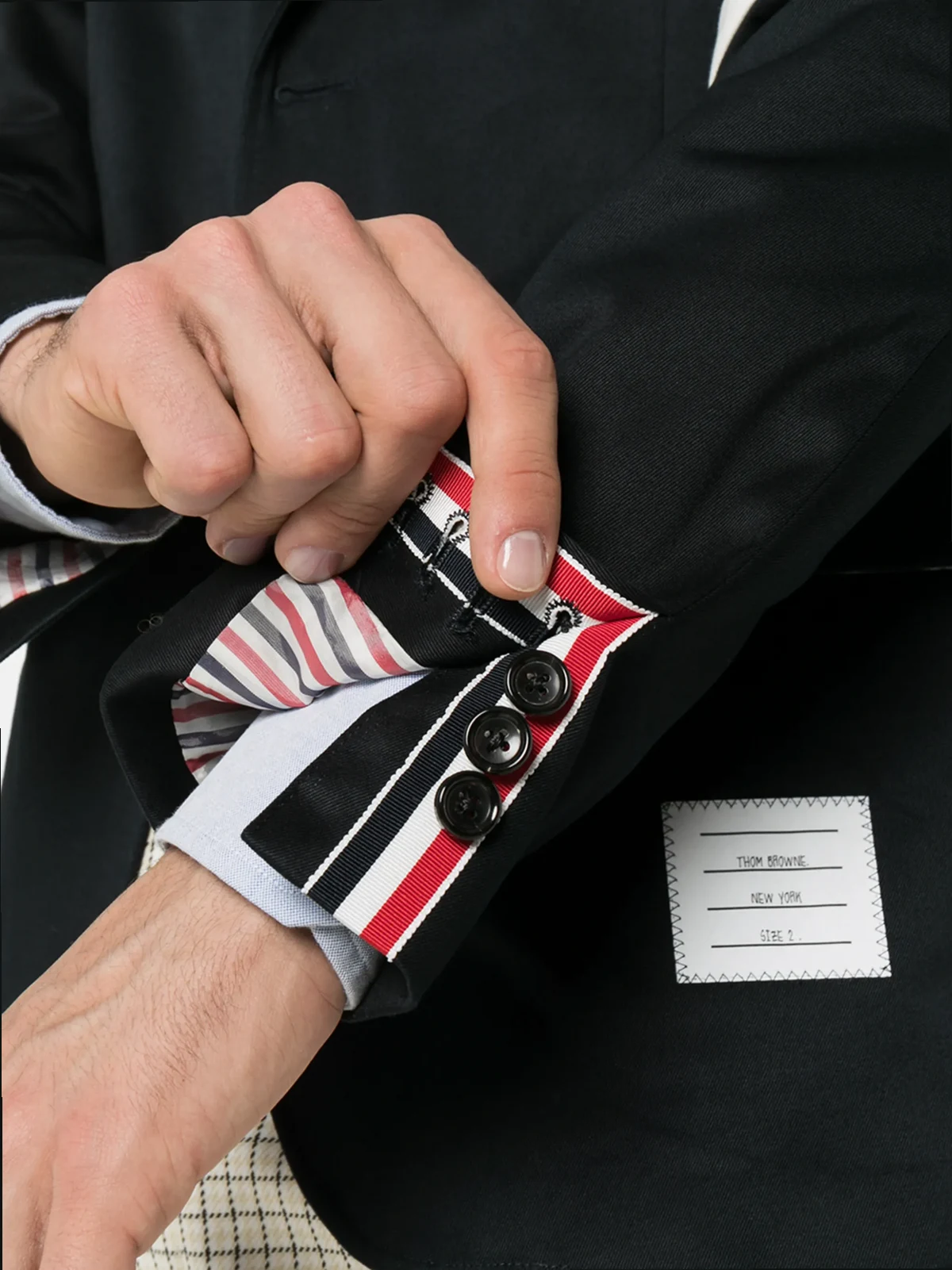 Highlights: schwarz, Baumwolle, akzentuierte Schultern, fallendes Revers, eingefasste Brusttasche, Knopfverschluss vorne, Vordertaschen mit Klappe, Logo-Patch vorne, lange Ärmel, Knopfmanschetten, zwei seitliche Schlitze hinten.