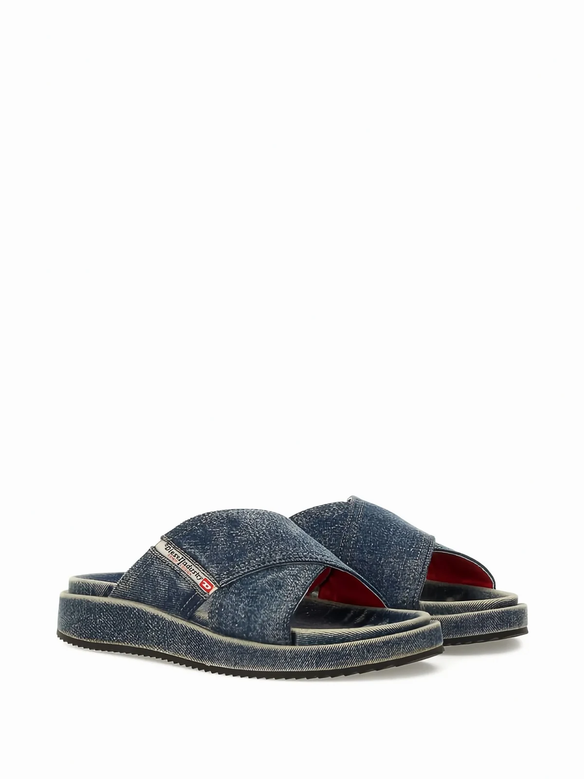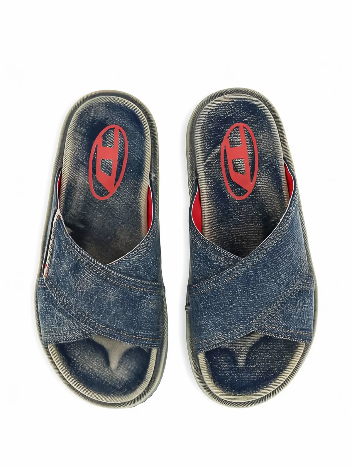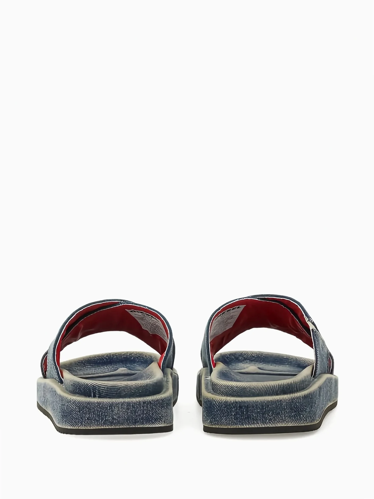 Jeans-Pantoletten mit überkreuzten Riemen