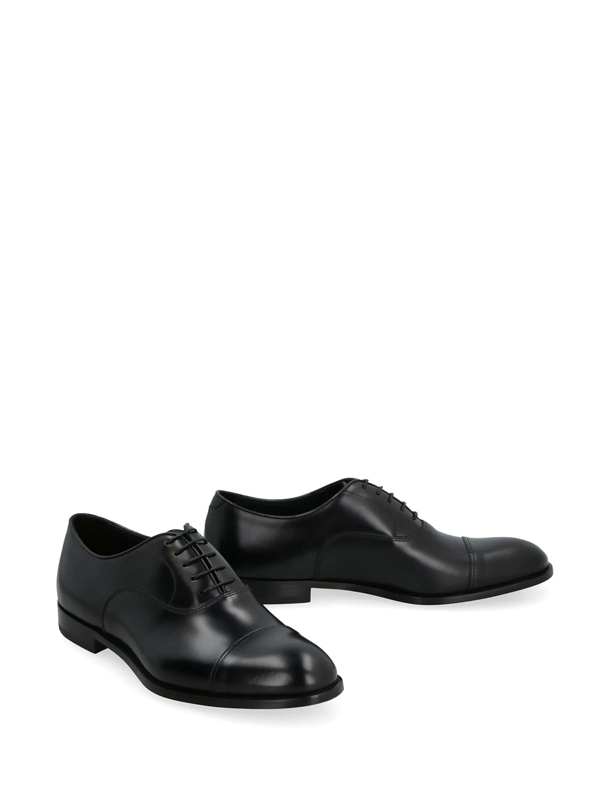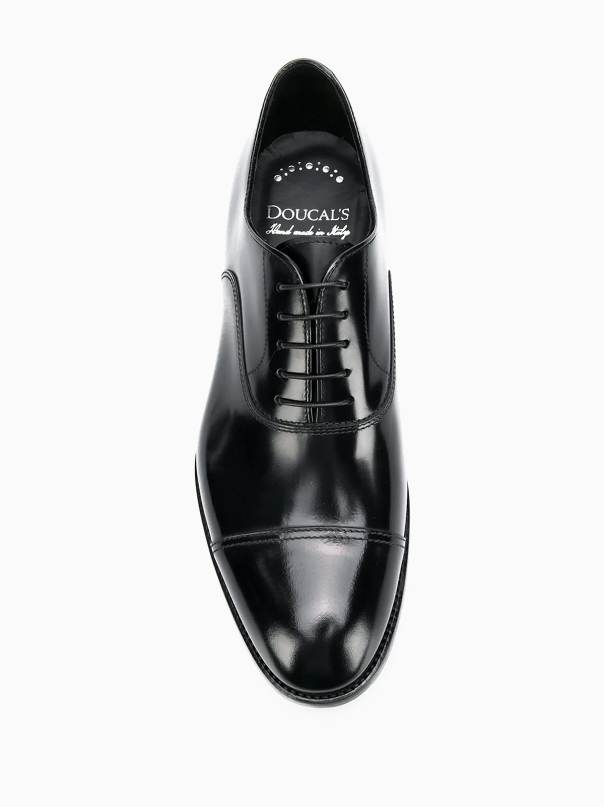 Klassische Oxford-Schuhe aus Kalbsleder von Doucal's mit folgenden Eigenschaften: mandelförmige Kappe, Schnürung vorne, Logo-Prägung im Fußbett und flacher Absatz.