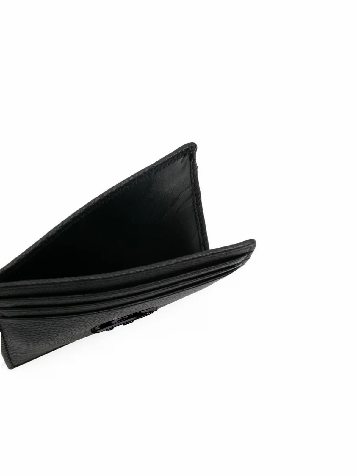 Schwarz, Kalbsleder, strukturiert, Logo-Schild, Kartenfächer, Geldscheinfach.