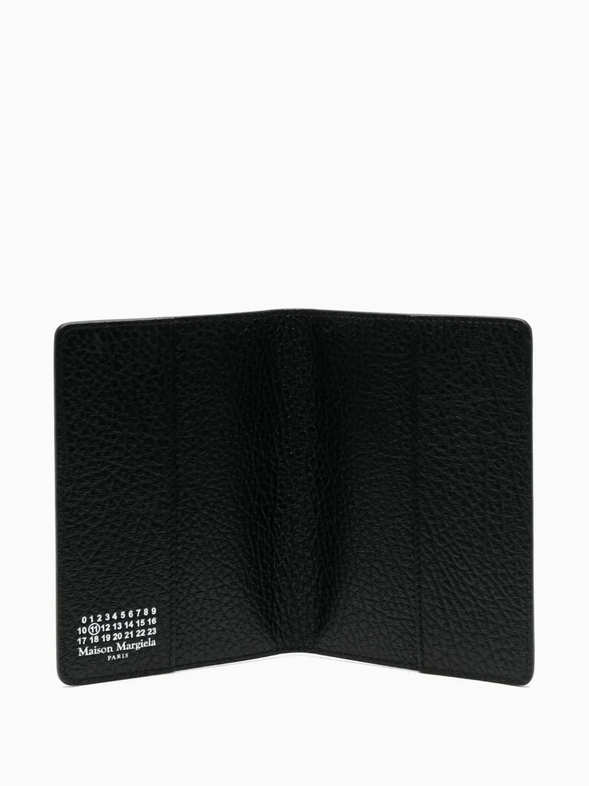 Schwarz, Kalbsleder, klappbar, Signature-Logo aus vier Nähten, ikonisches Numbers-Motiv.