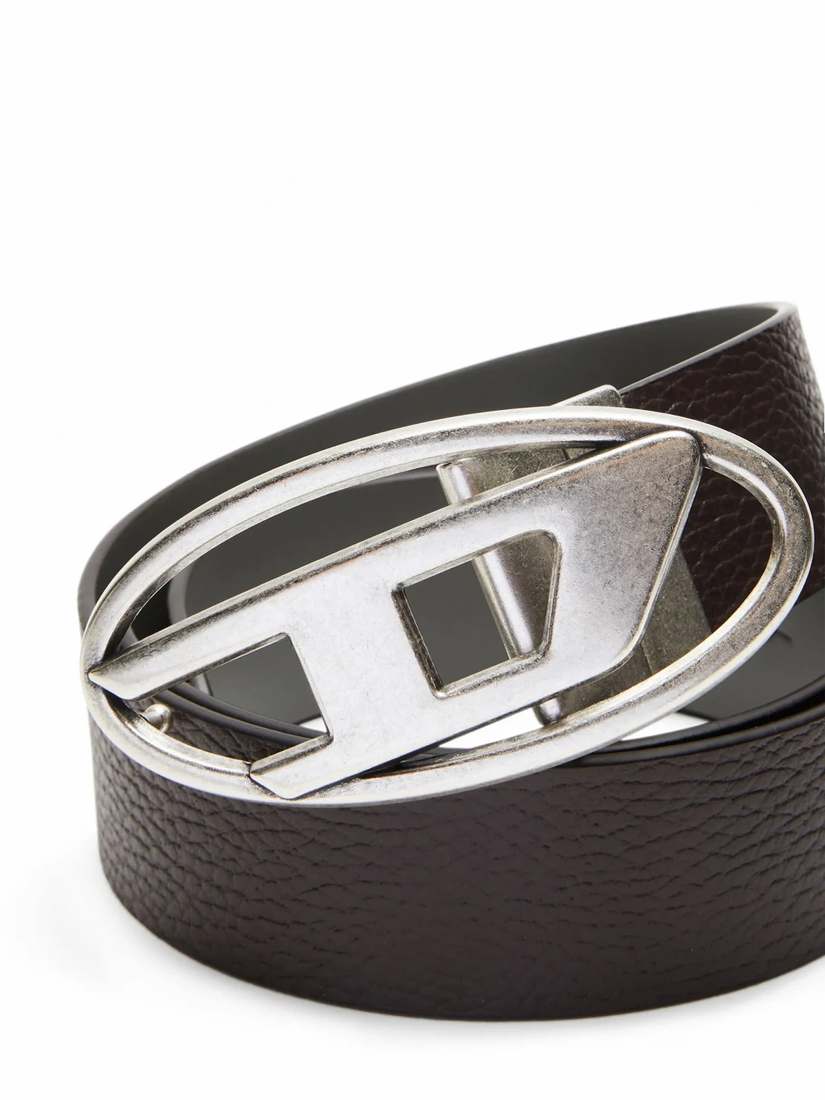 – Schmaler Ledergürtel in Braun mit goldfarbener Schnalle