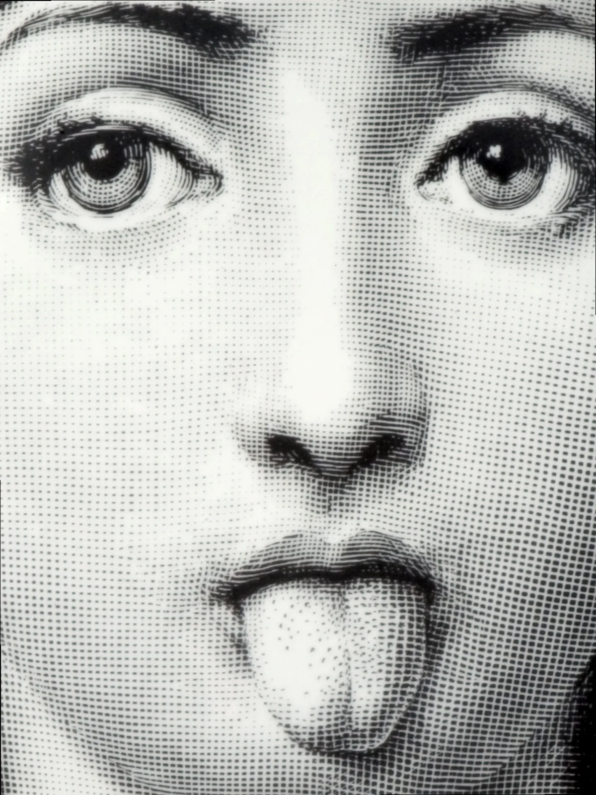 Schwarz/Weiß, runde Form, Gesichts-Motiv.