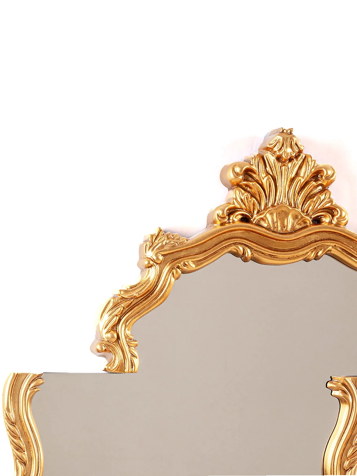 Goldfarben, Glas, asymmetrischer Schnitt, Beschläge mit Antik-Effekt.