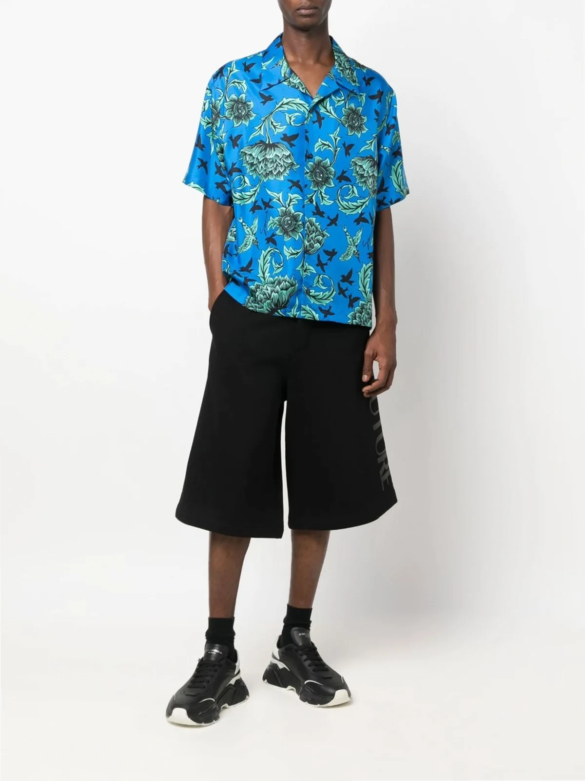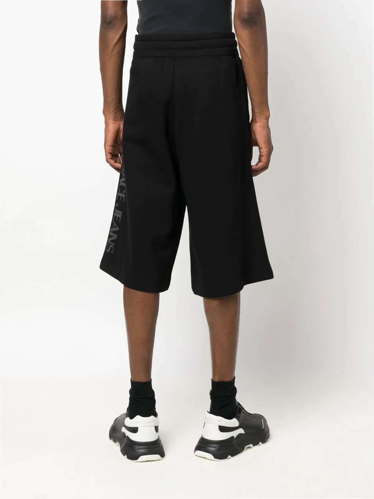 Schwarz, Baumwolle, Kordelzugbund, Logo-Print am Bein, knielang.