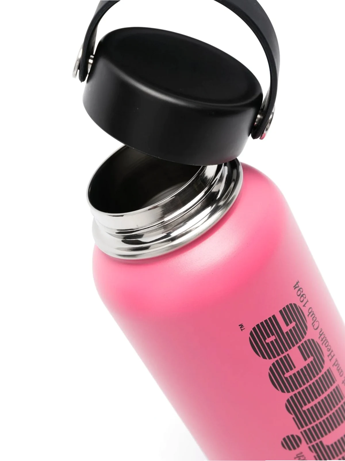 Pink, Edelstahl, seitlicher Logo-Print, abgerundete Ecken, Schraubverschluss.
