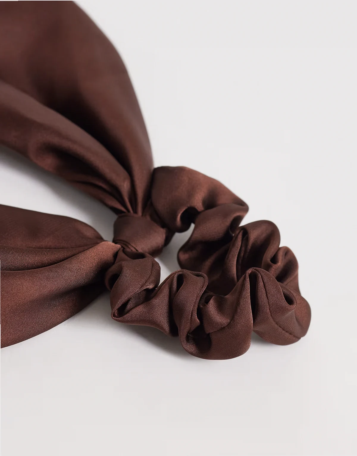 – Scrunchie-Haargummi in Dunkelbraun mit Schaldetail