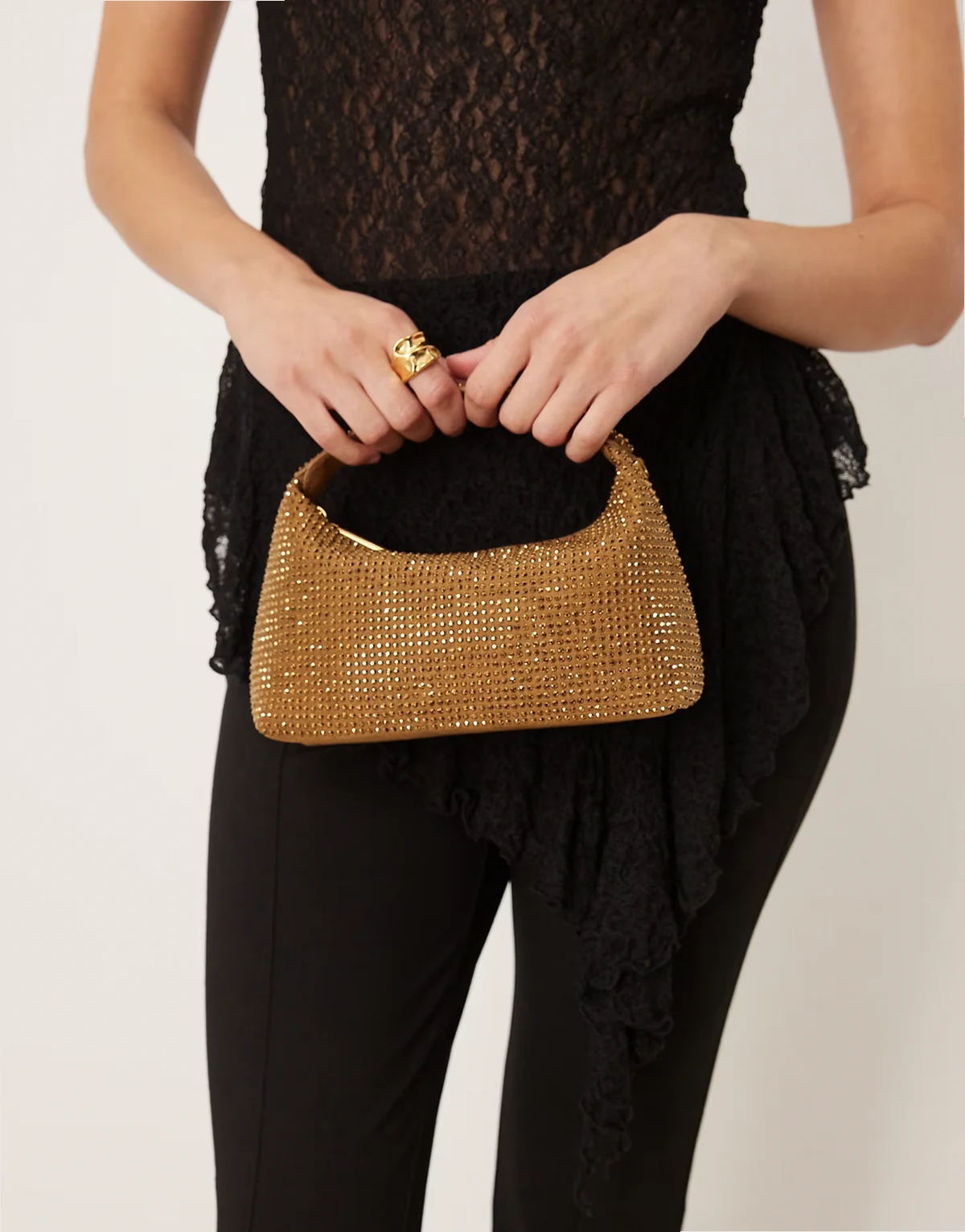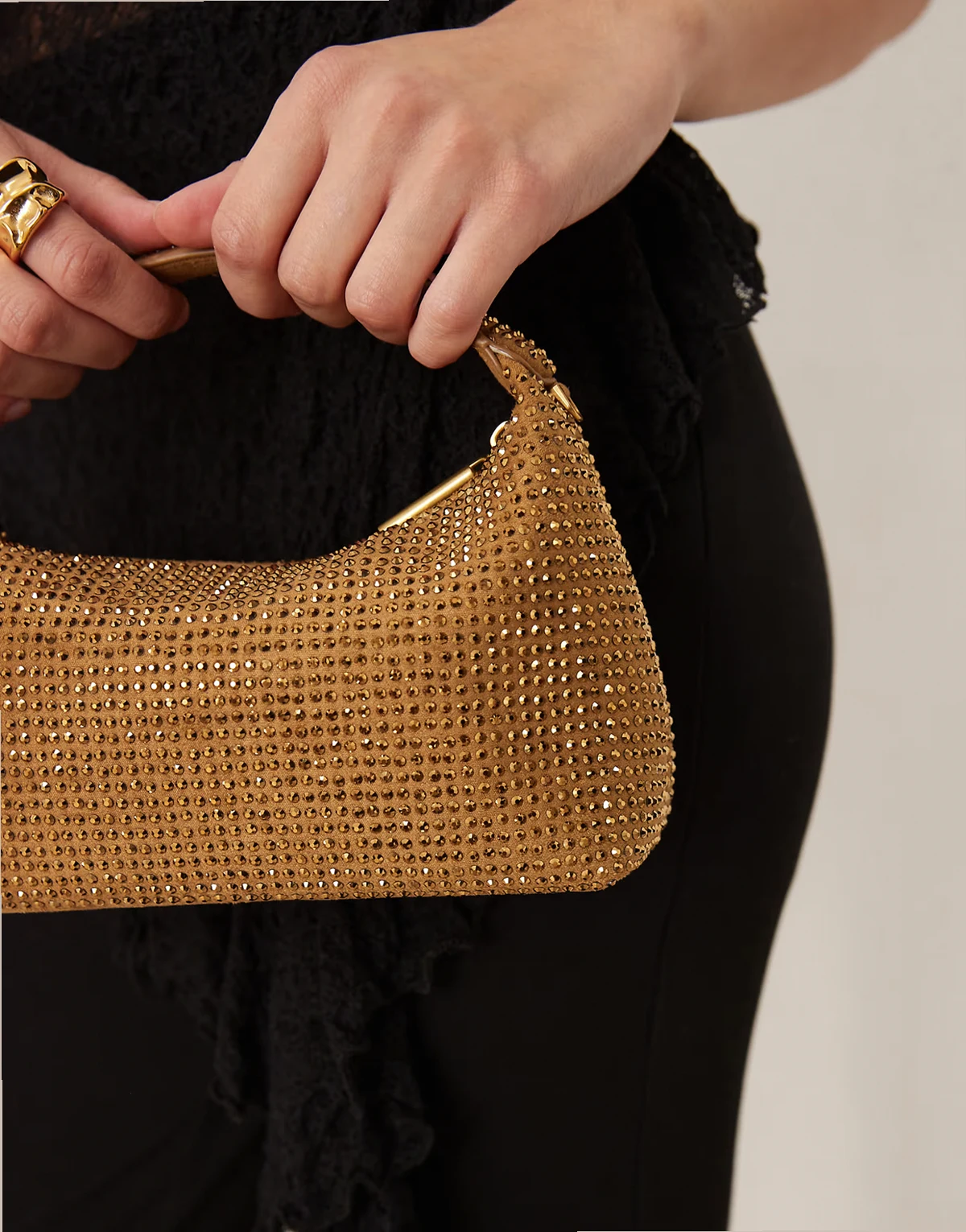 – Mini-Handtasche in Orange mit abgerundetem Boden und Umhängeriemen