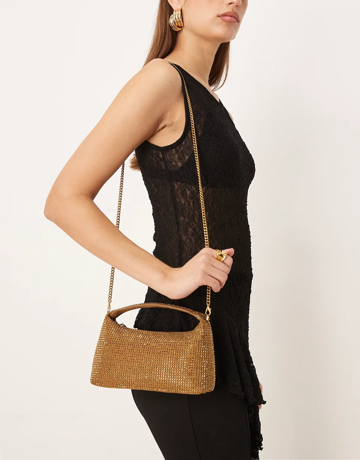 – Kastige Tasche in Schwarz mit abnehmbarem Umhängeriemen