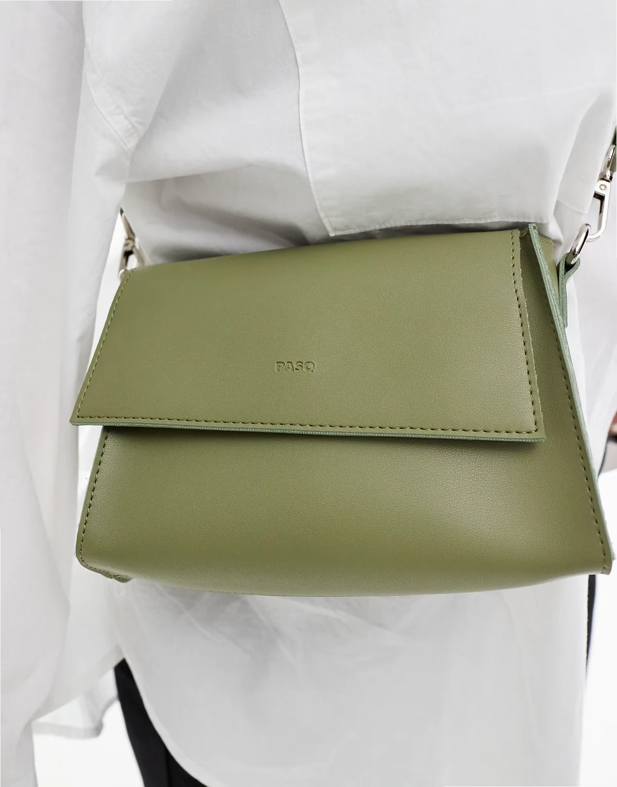 – Klassische Umhängetasche in Matcha-Grün mit Umschlag