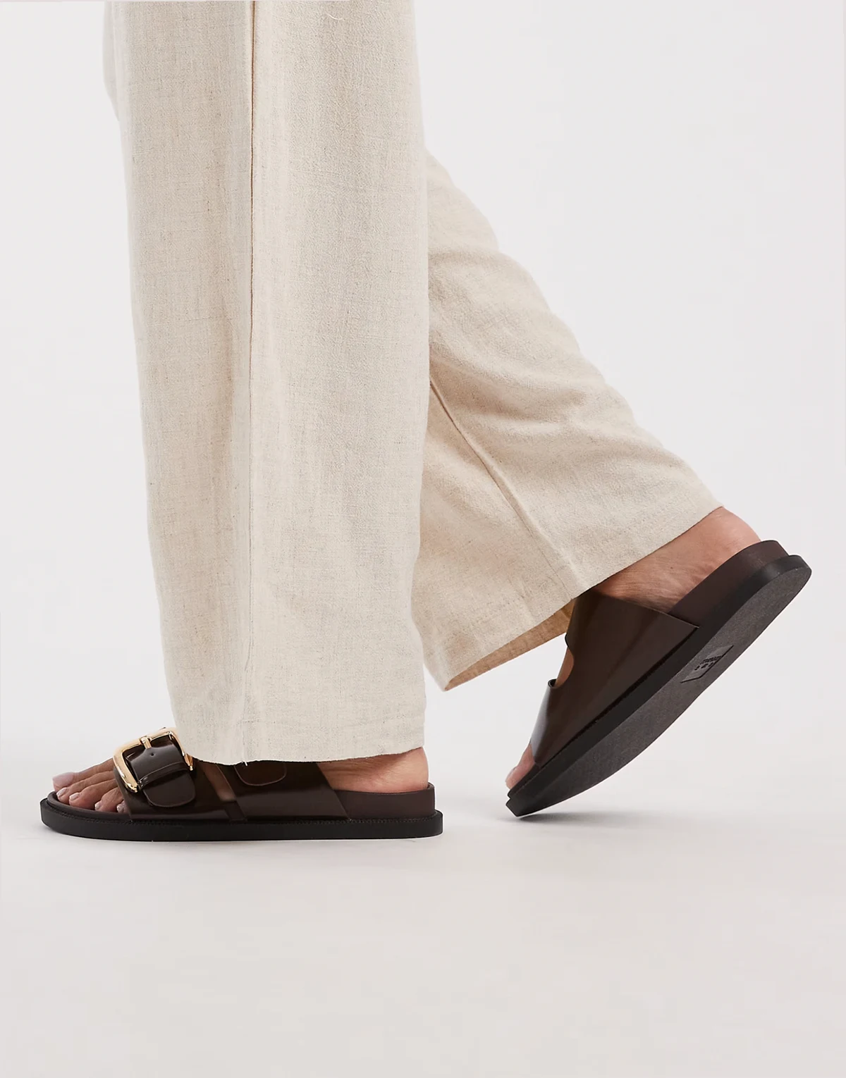 – Flache Sandalen in Braun mit zwei Schnallen, weite Passform